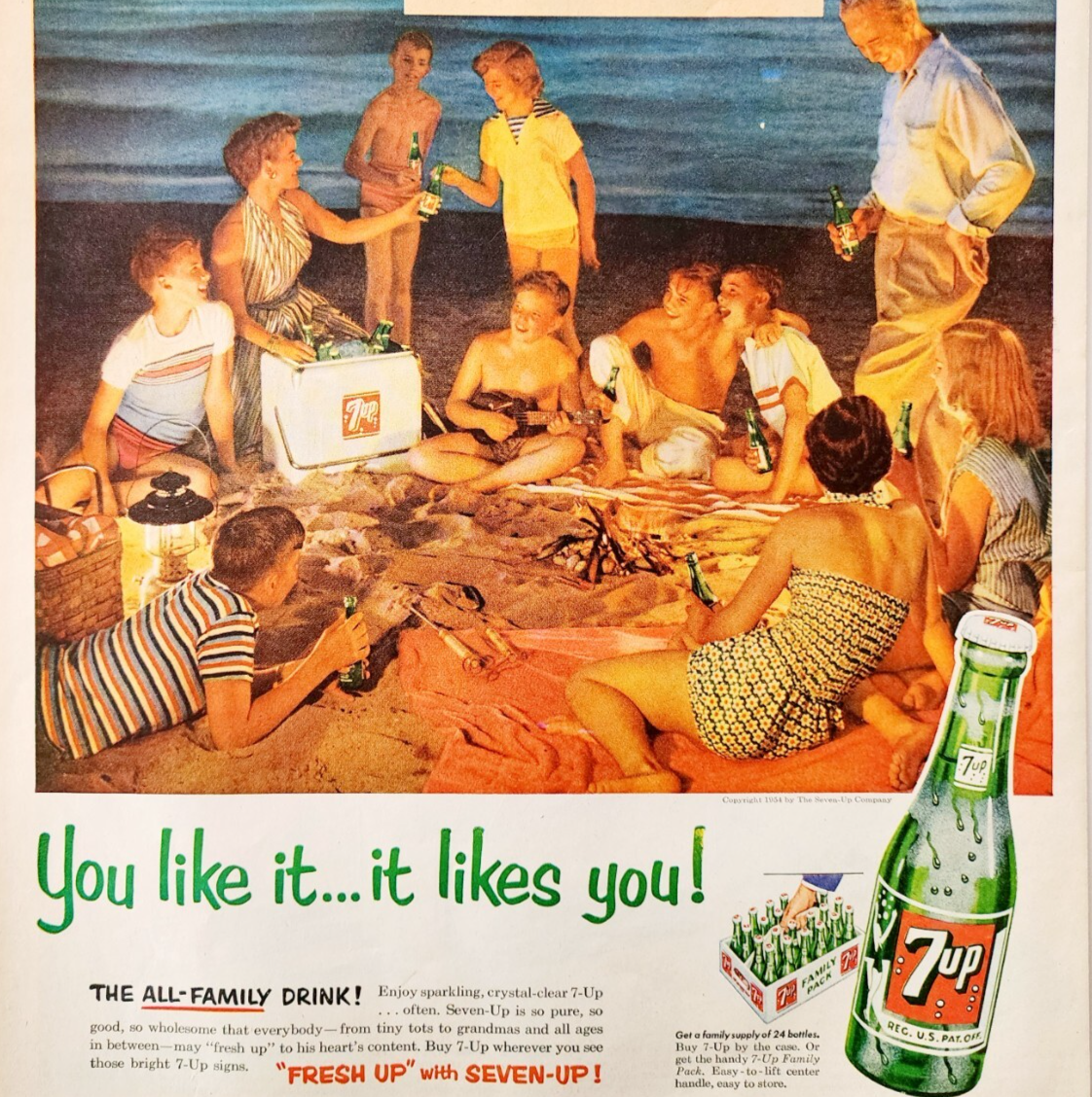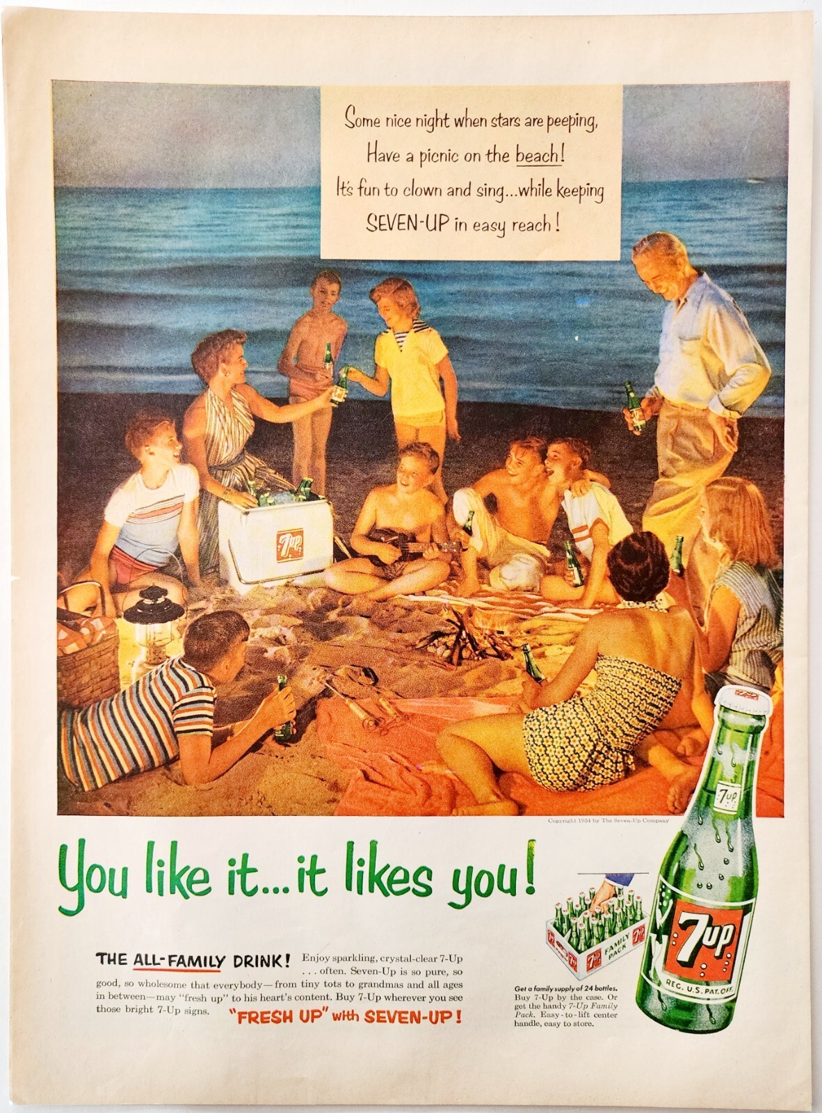 1954 7Up Seven Up Soft Drink Advertisement Pop Soda Beach Scene Vintage DWJJ13