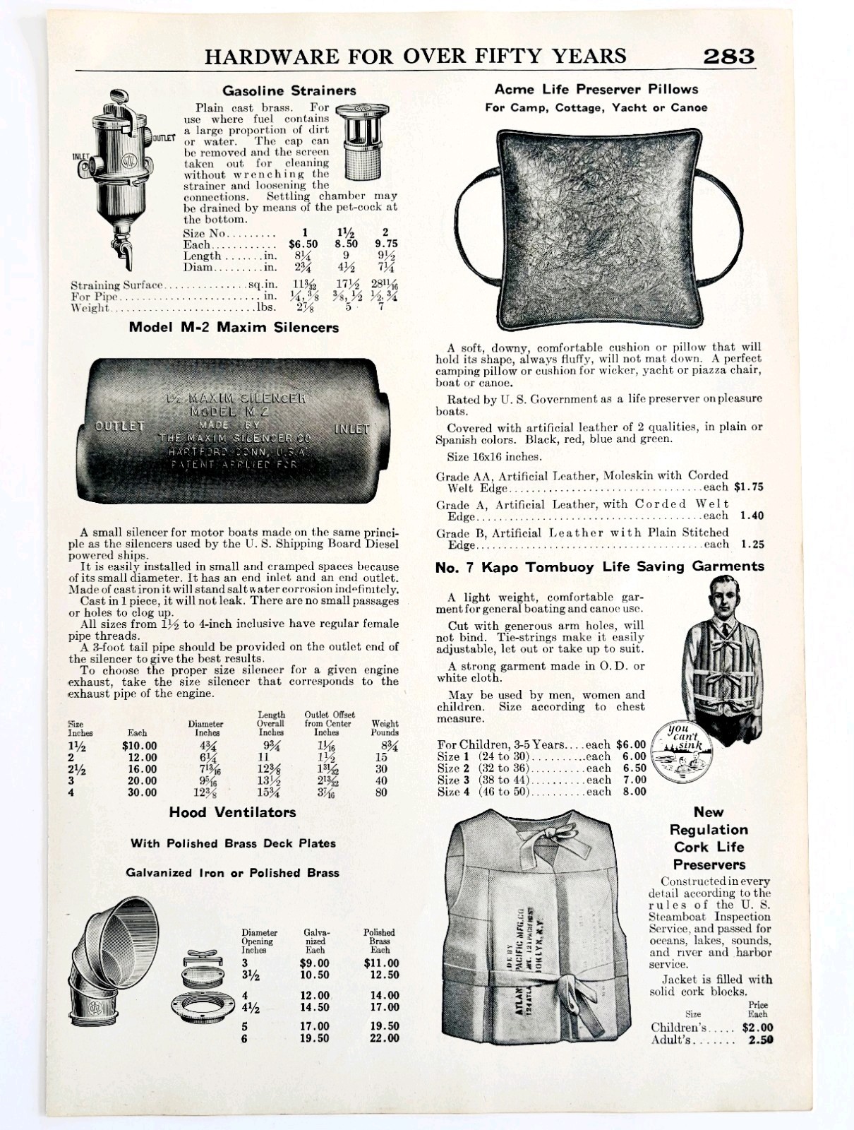 1922 N.T. Bushnell Life Preservers Boats Advertisement Catalogue Hardware DWA23