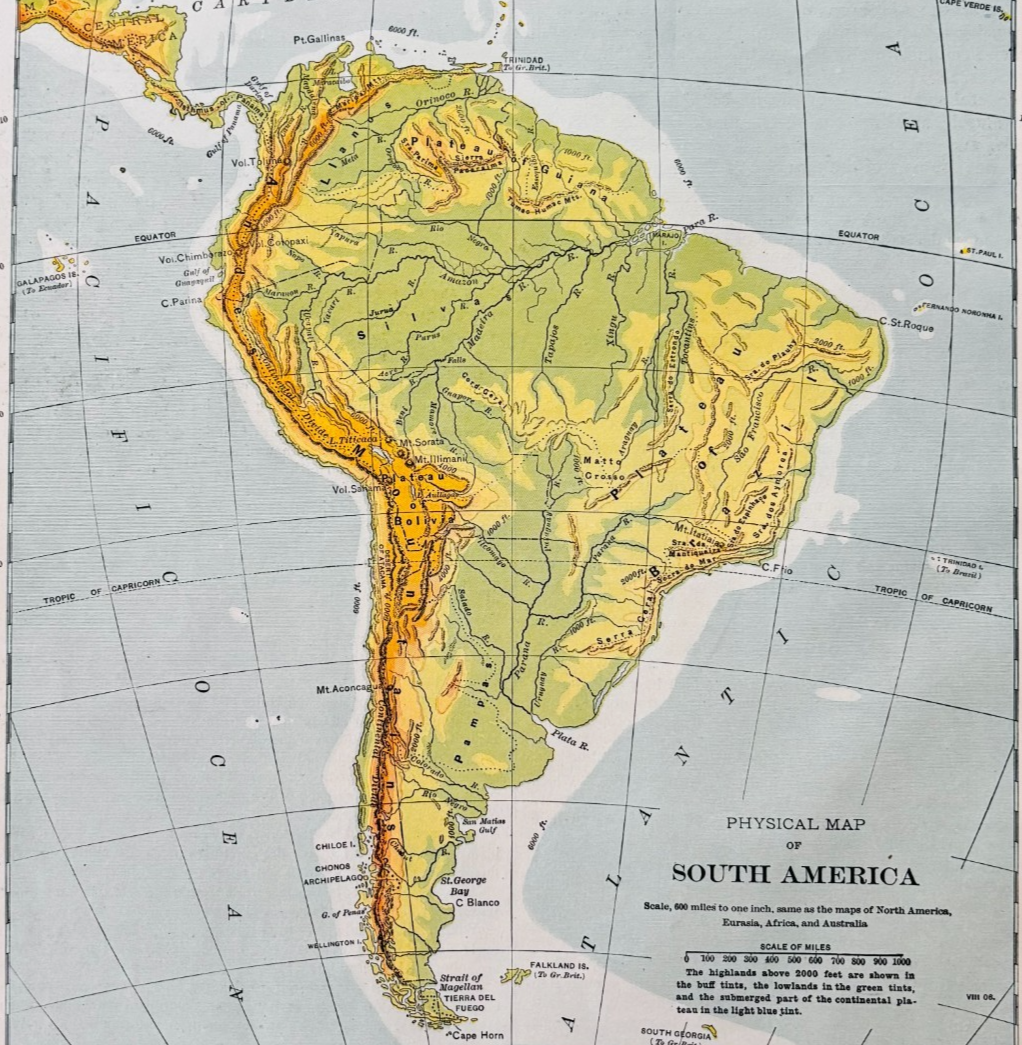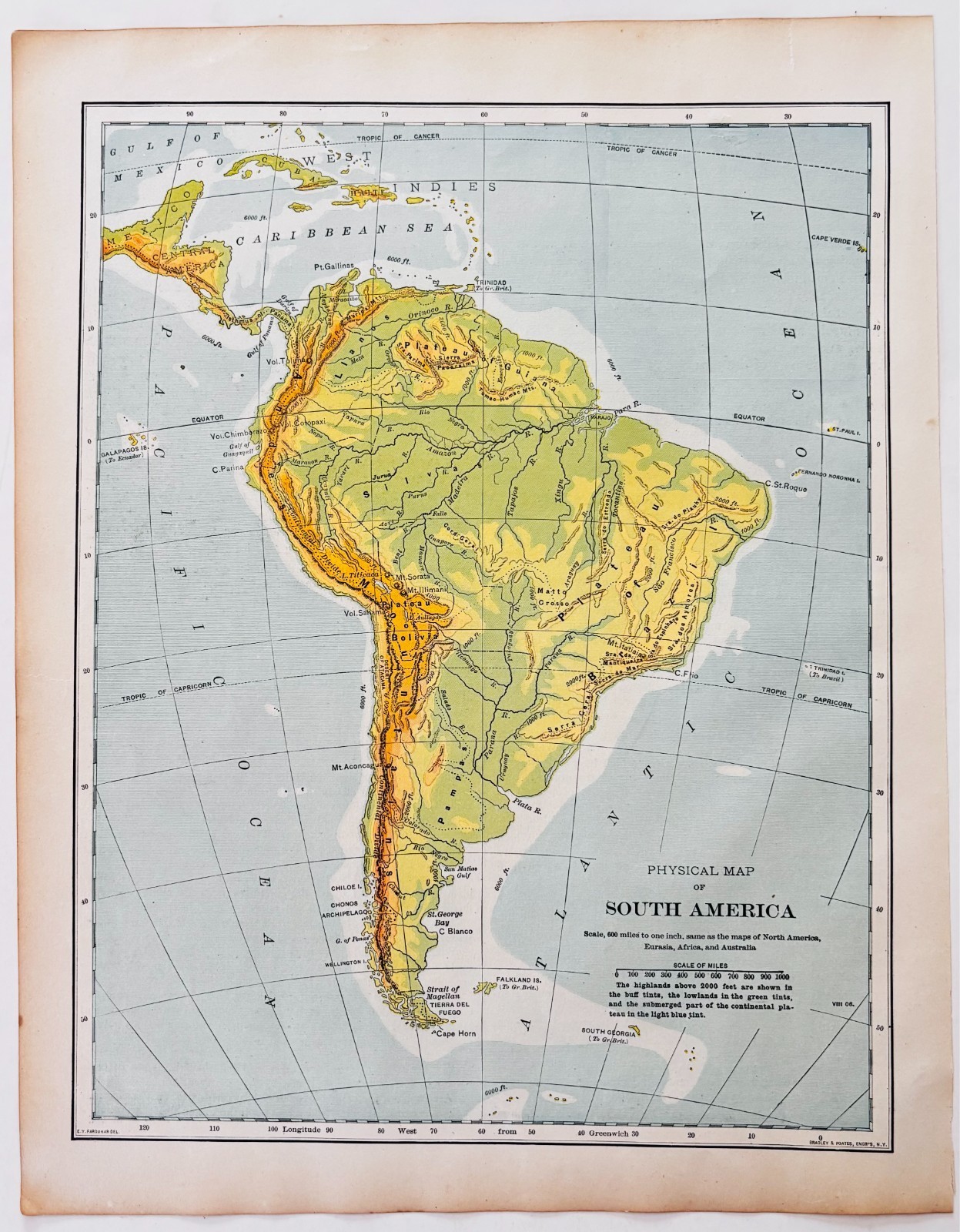 1898 Map South America Continent Victorian Physical Geography Atlas Print DWXX1