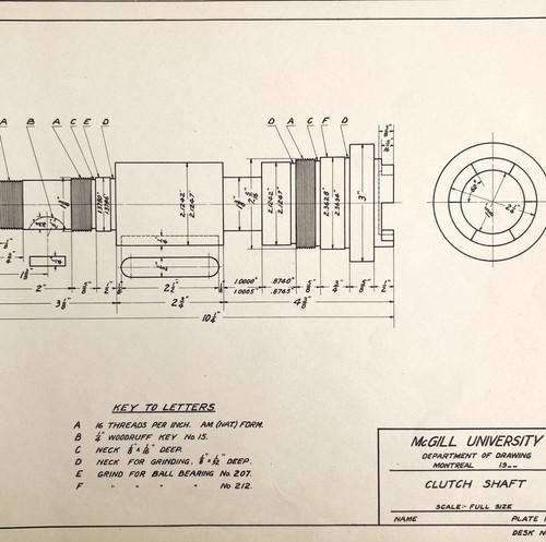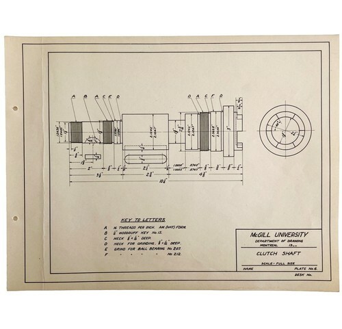 McGill University Clutch Shaft 1965 Mechanical Drawing Print Engineering DWEE12