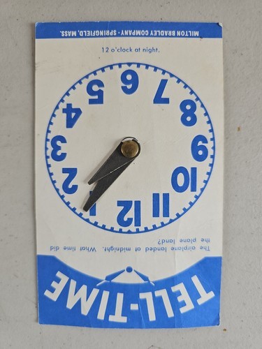 This lot of vintage 1950s Milton Bradley Childrens Telling Time Clocks includes 5 charming and educational toys. Made in the United States, each clock features different questions. The clocks are all in good working order and would make a great addition to any collection of vintage toys or educational items. The brand name Milton Bradley is well-known for quality products and this set is no exception. Don't miss out on the opportunity to own this unique and timeless set of clocks.