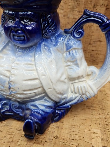 This rare teapot depicts a over weight Parliament male figure with great details to his Victorian clothing from his shoes, jacket, to hat... great facial expression. He is also supporting the tea pot with his right hand Amazing condition for its age, no chips or cracks