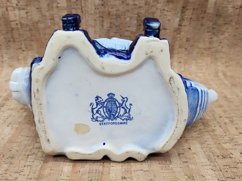 Antique English Victoria Staffordsmire Flow Blue Toby Teapot c 1900 Parliament