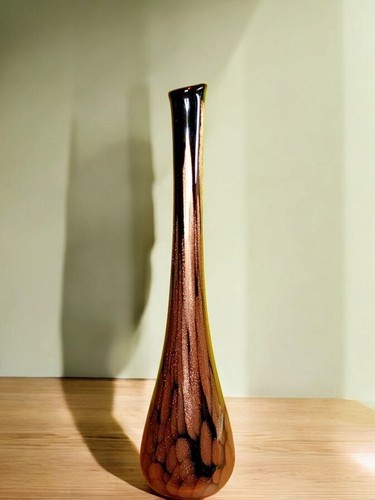 UP FOR SALE: Murano Copper Adventurine 19" Hand Blown Vase Butterfly Pontil Mark Vintage