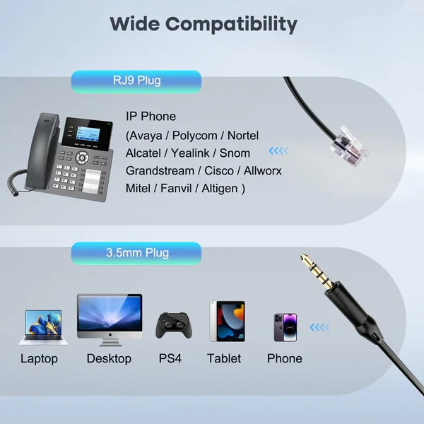 RJ9 Call Center Headset with RJ9 Jack 3.5mm Connector for Landline Deskphone Cell Phone PC Laptop, Office Headset with Microphone, Work for Plantronics Cisco Polycom Avaya