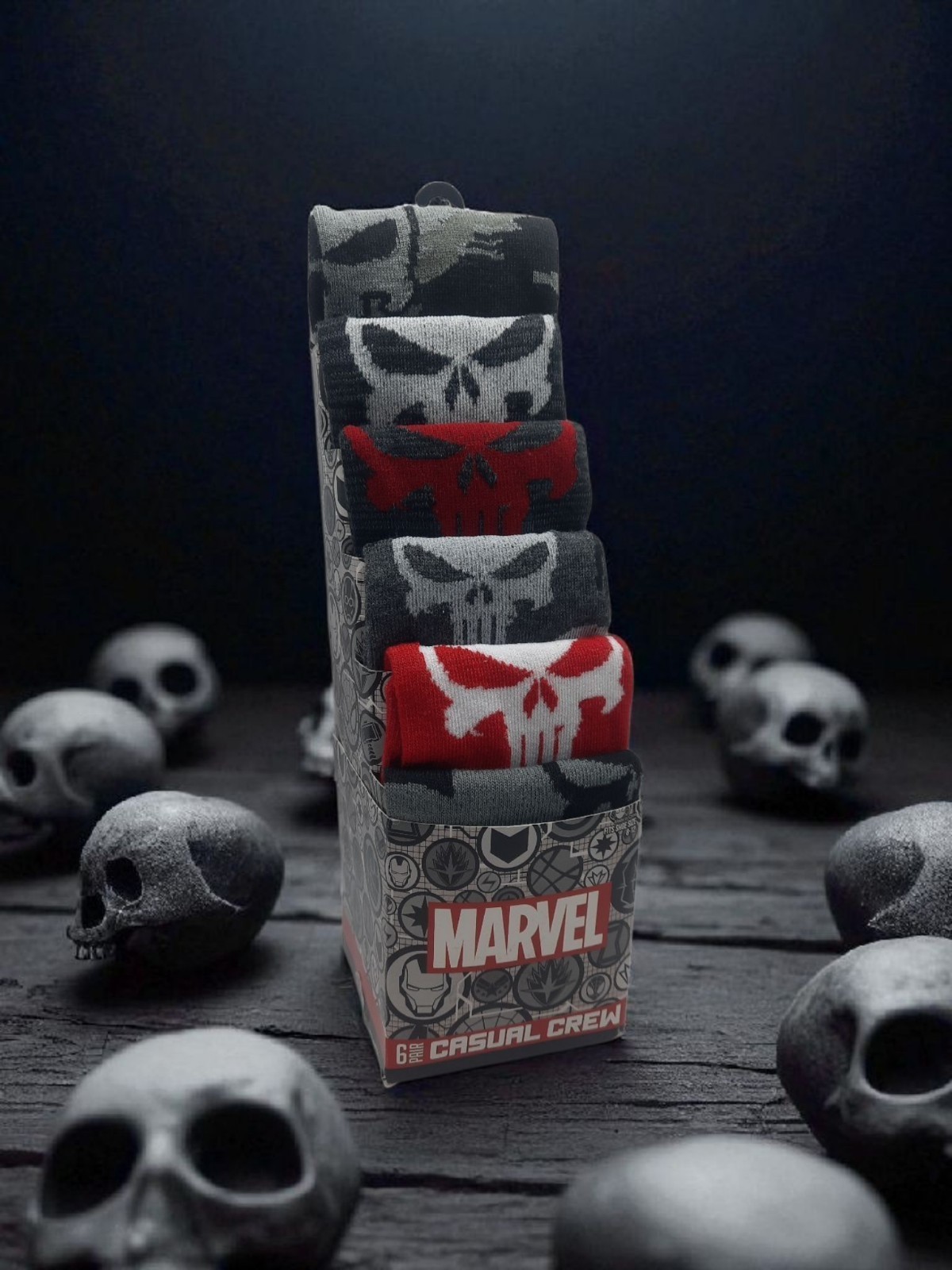 Marvel Comics The Punisher Socks Men's Skull Logo 6-Pair Crew Socks for Adults
