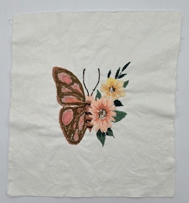 Vintage Embroidered Butterfly Floral 10.5x11.5 Handmade Fabric Textile Art
