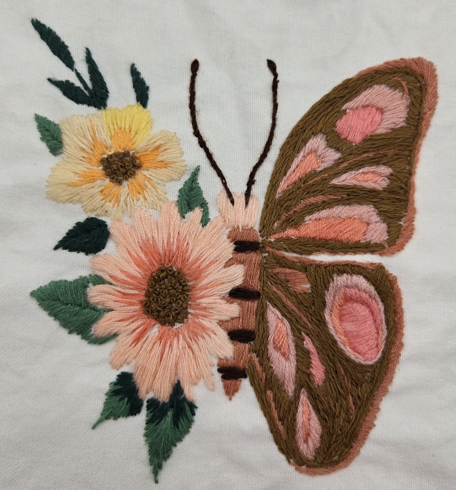 ListEbay said: Vintage Embroidered Butterfly Floral 10.5x11.5 Handmade Fabric T