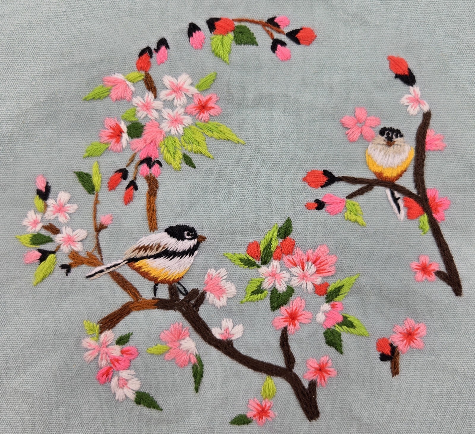 Vintage Embroidered Songbird Cherry Blossoms and 12 similar items