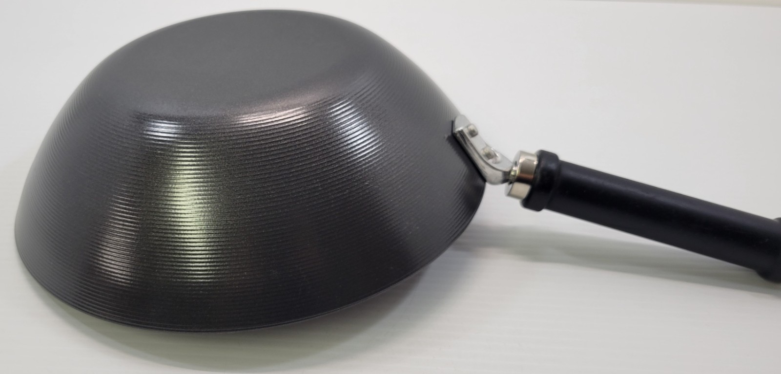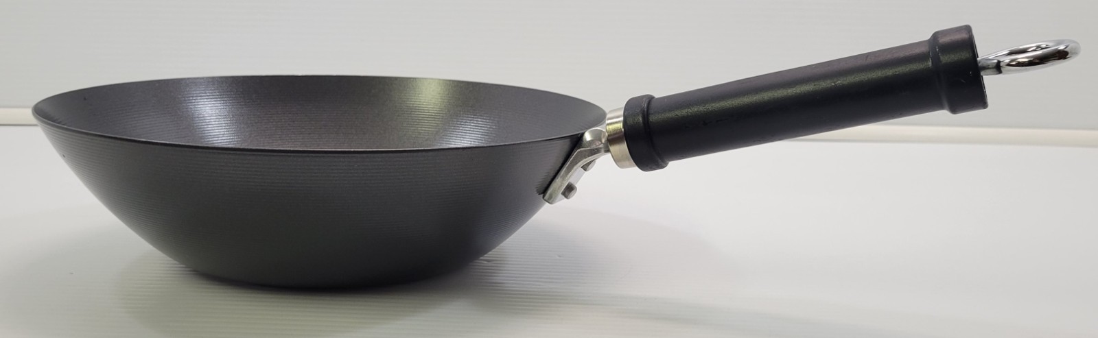 Wok is in overall good, slightly used condition but has been in storage for some time. The plastic handle is a bit sticky due to age.