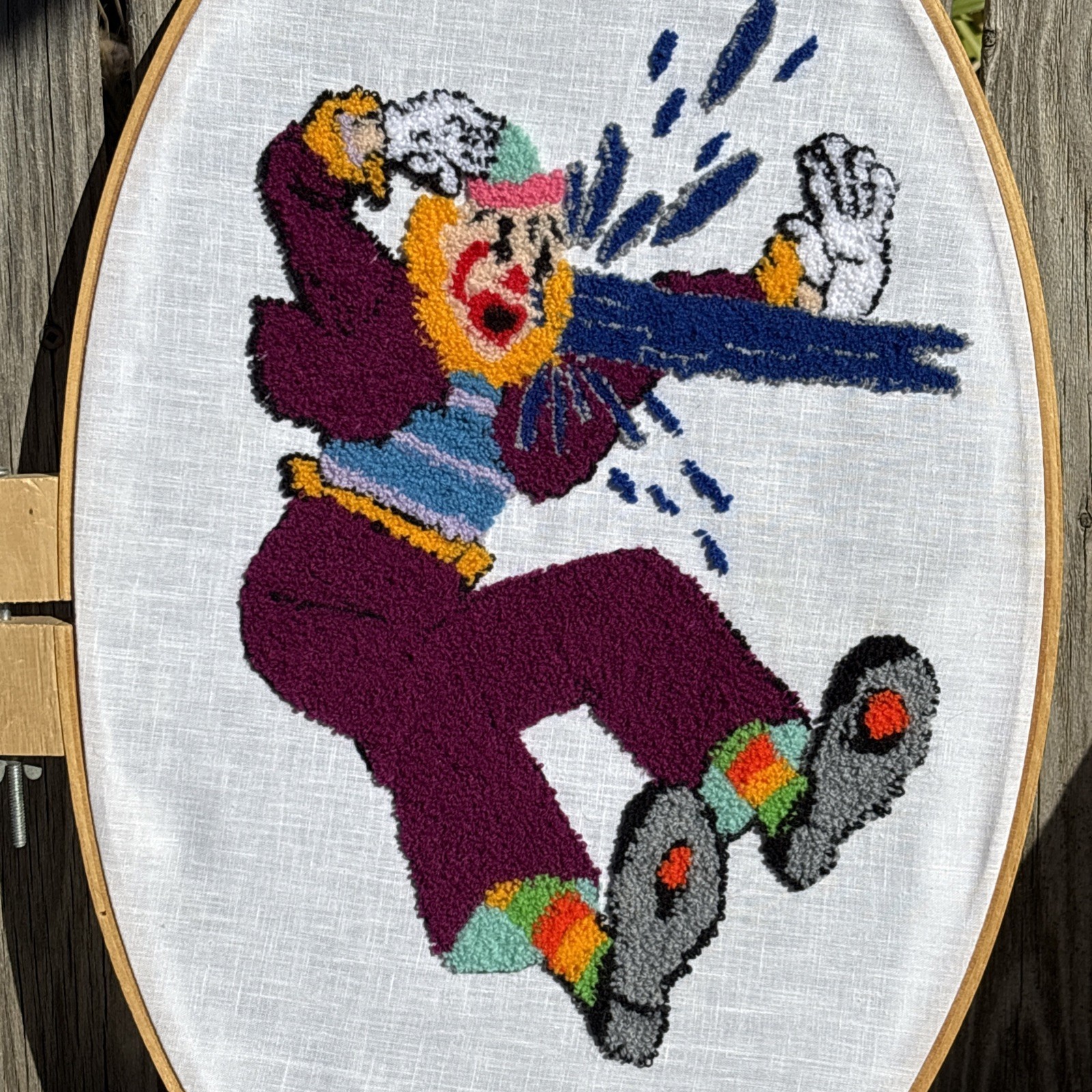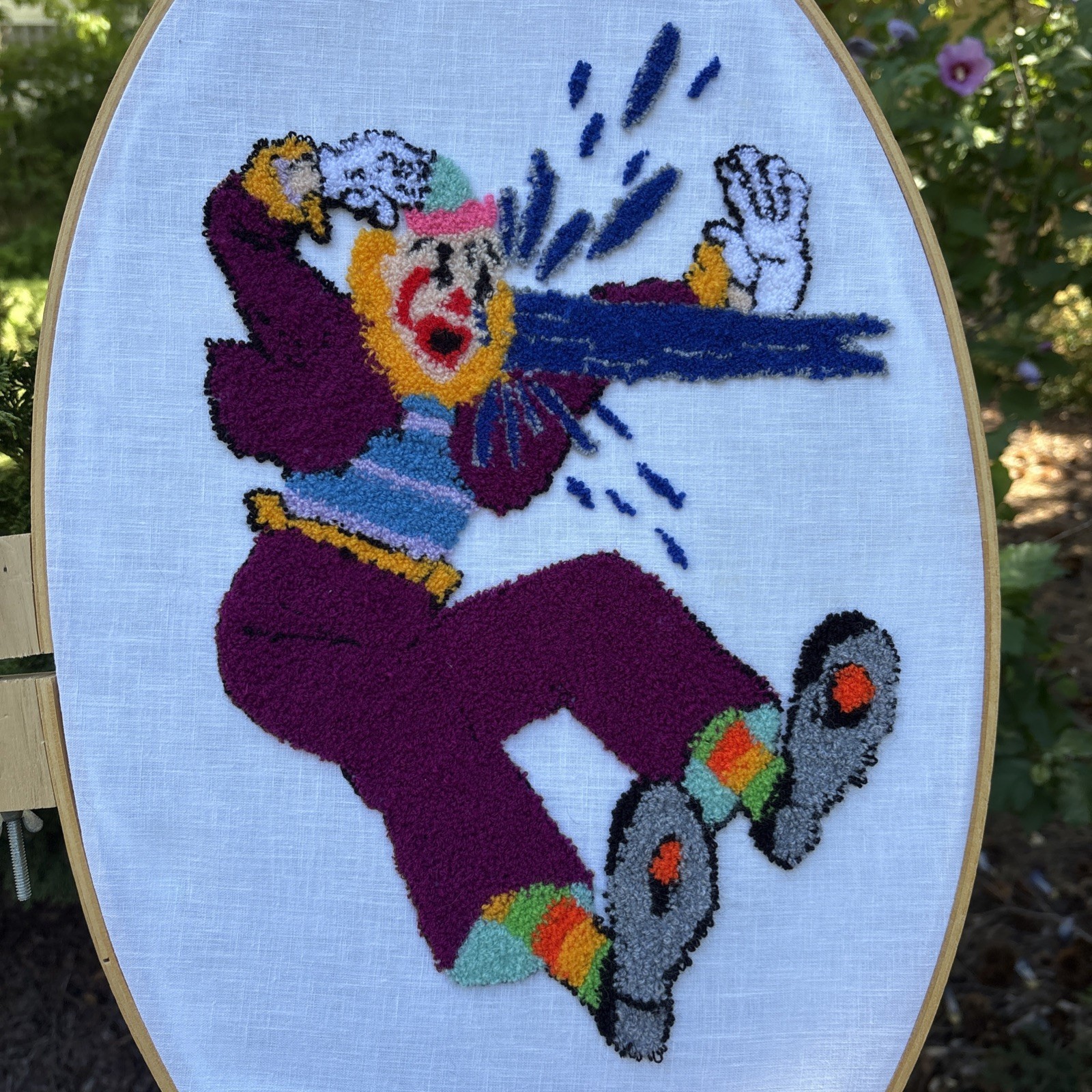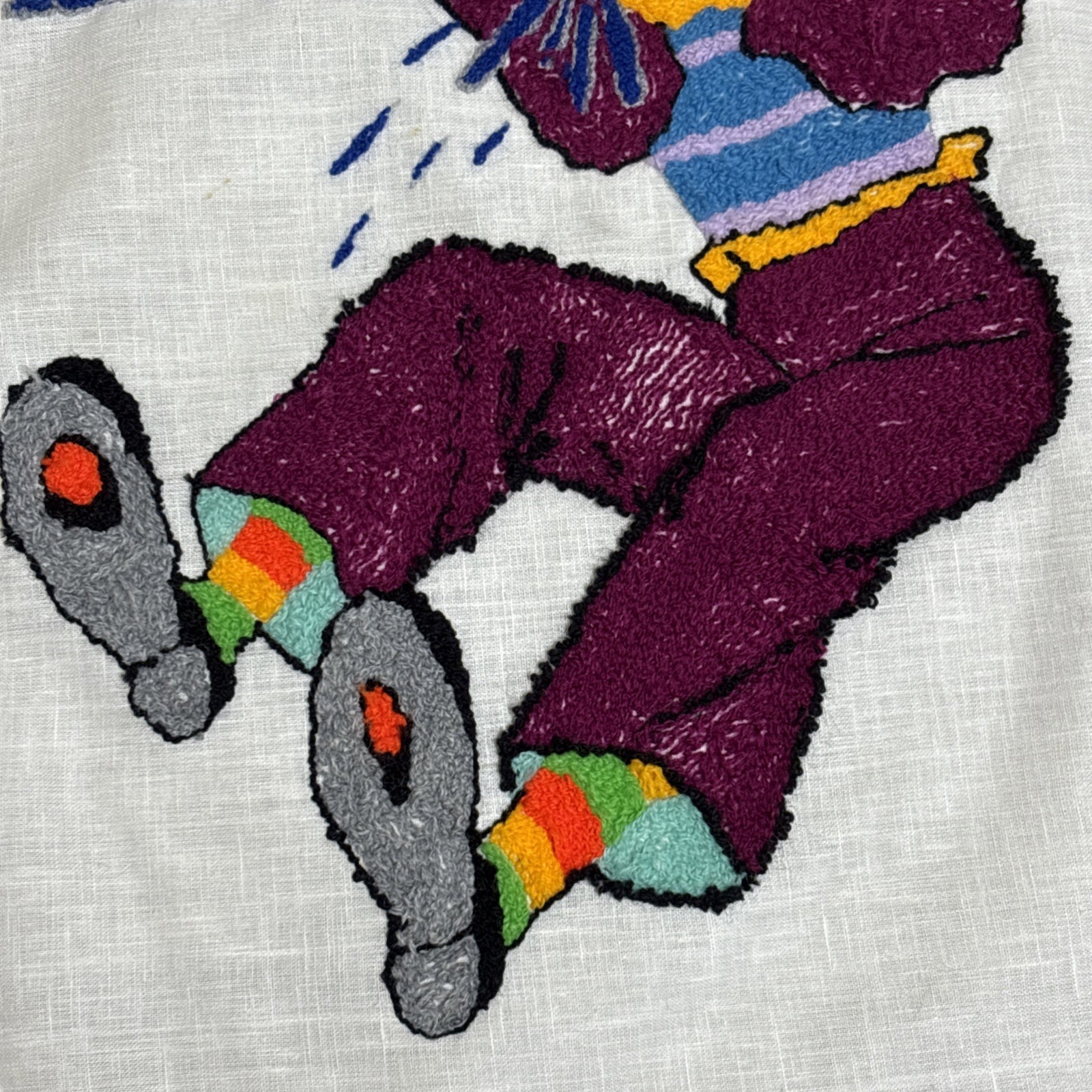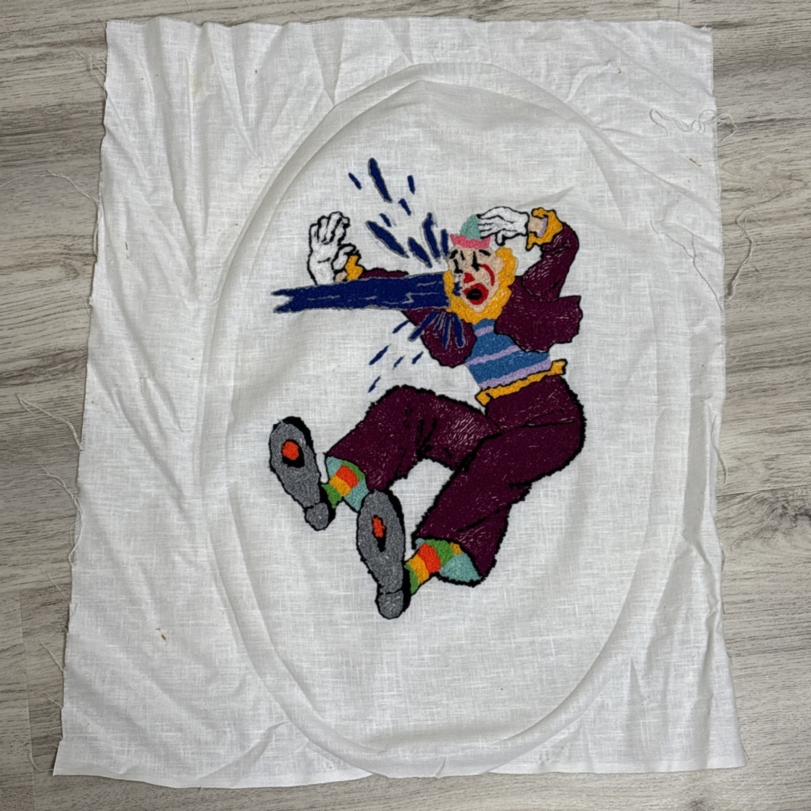Punch Embroidery Art Circus Clown Finished Needlework Unframed 70s Handmade