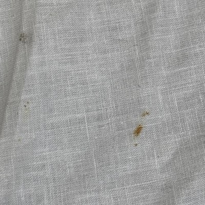Staples have left a few rust spots as seen in photos, but no attempt made to clean. There is no moisture damage, odor or signs of deterioration to the fabric or artwork.