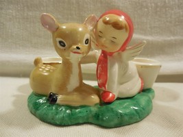 Vtg 1950s Holt Howard Japan Ceramic Christmas Angel and Fawn Deer Candle Holder