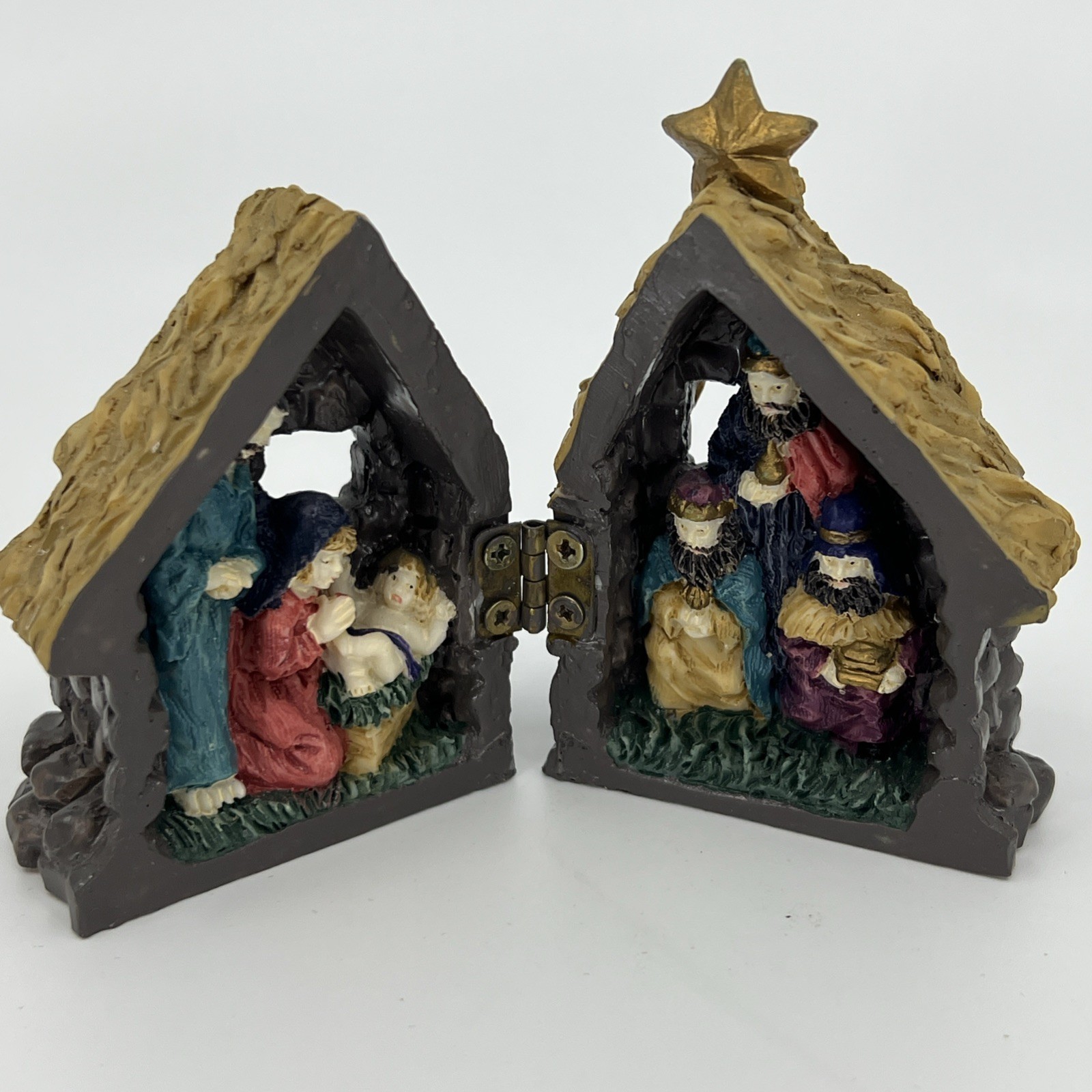 VINTAGE MINIATURE RESIN Book-like HINGED FOLDING SHUT NATIVITY SCENE 1.75x2x2.75