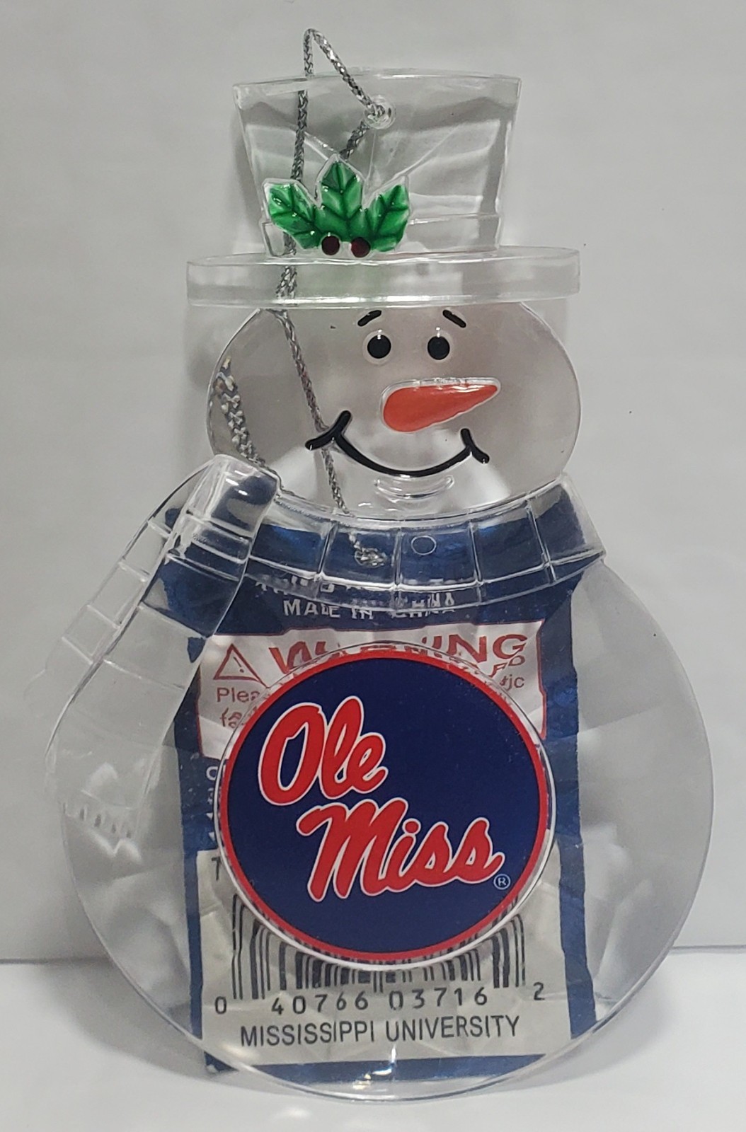 Officially Licensed Ole Miss Rebels Acrylic Snowman Ornament.