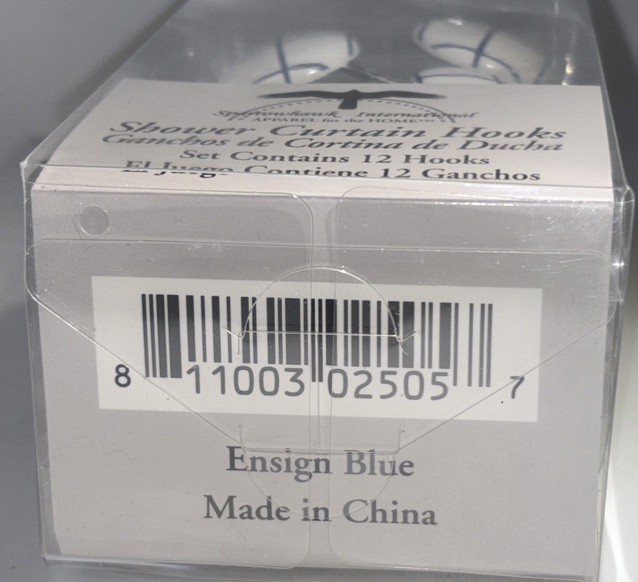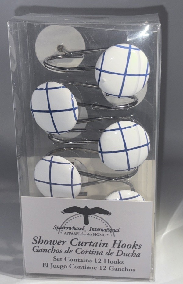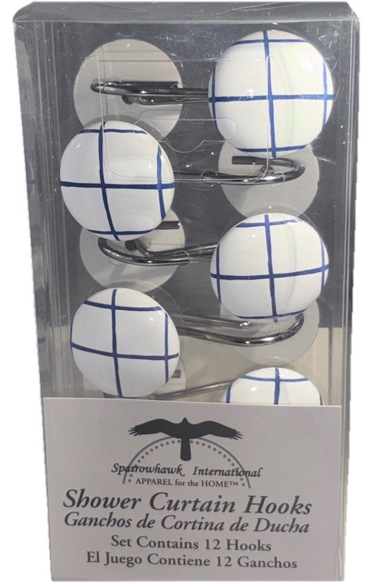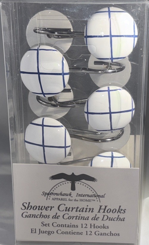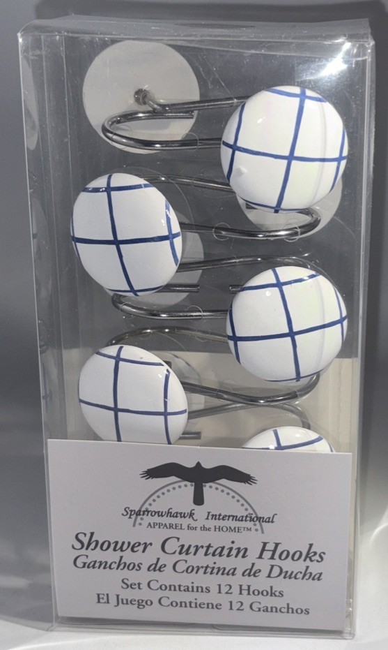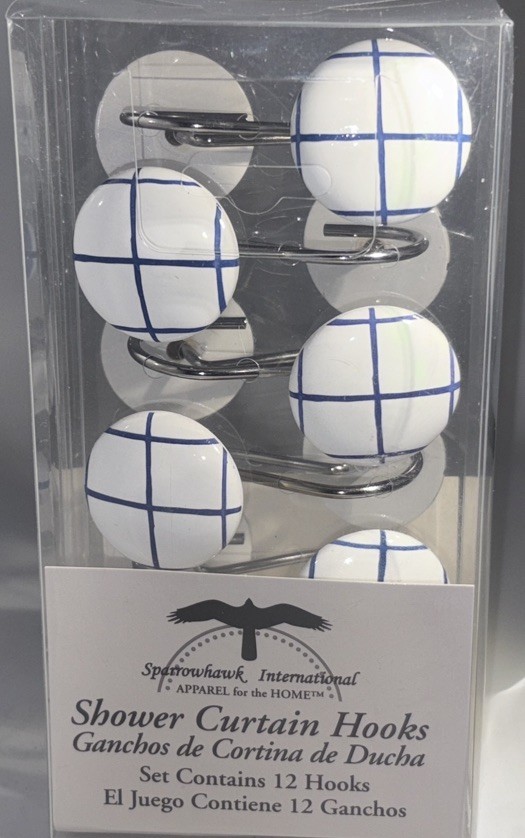 You Will Receive 1 ea Sparrowhawk Set of 12 Shower Curtain Hooks Round White/Ensign Blue Brandon Twill-Brand New-SHIPS N 24 HOURS.