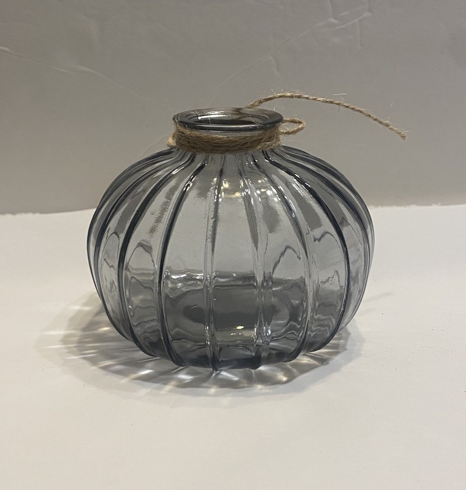 Small Glass Pumpkin Shaped Vase With Bow Table Decor (SHIPS IN 24 HOURS)