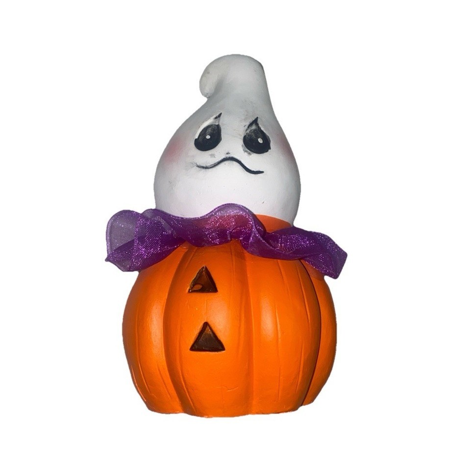 Halloween Ghost On Pumpkin With Purple Frill Cute Fall Decor (lSHIPS IN 24)