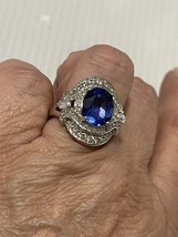 Blue Topaz Rhodium Over Sterling Silver Ring size 8