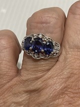 Sapphire And White Cubic Zirconia Rhodium Over Sterling Silver Ring sz 9