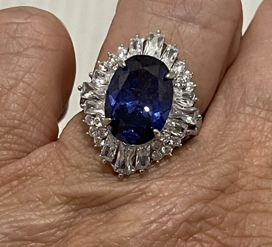 STERLING SILVER SIZE 8 Lab Created Sapphire And White Cubic Zirconia Rhodium