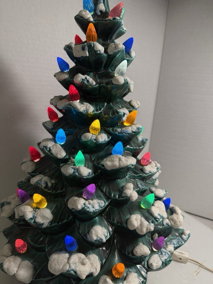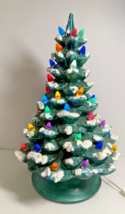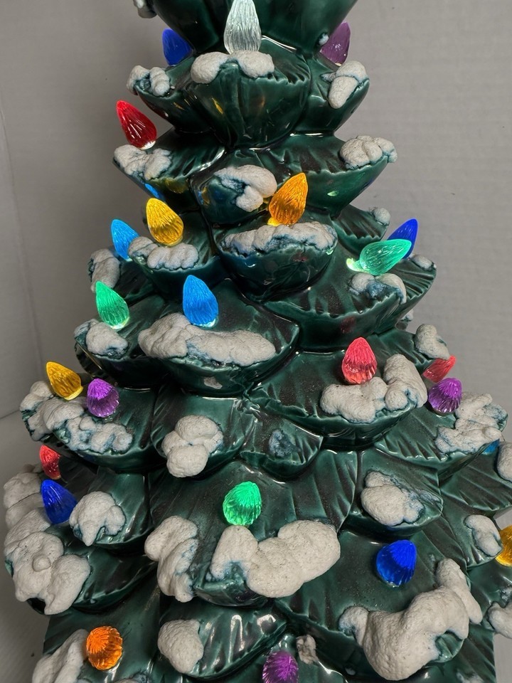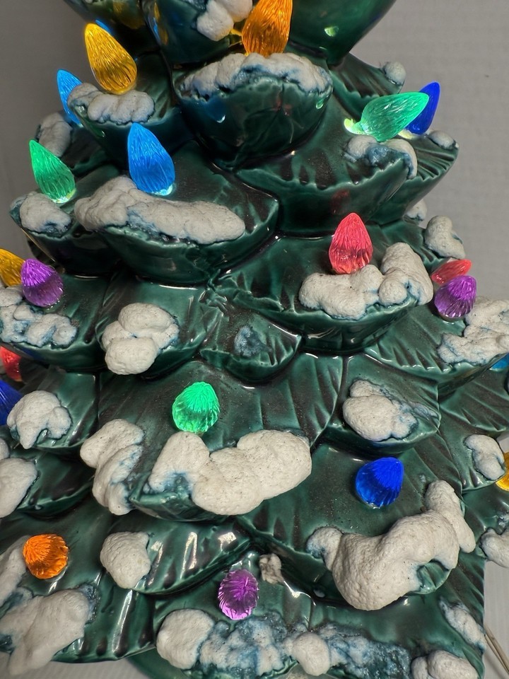 Vintage 17” 1970s Ceramic Green White Flocked Christmas Tree