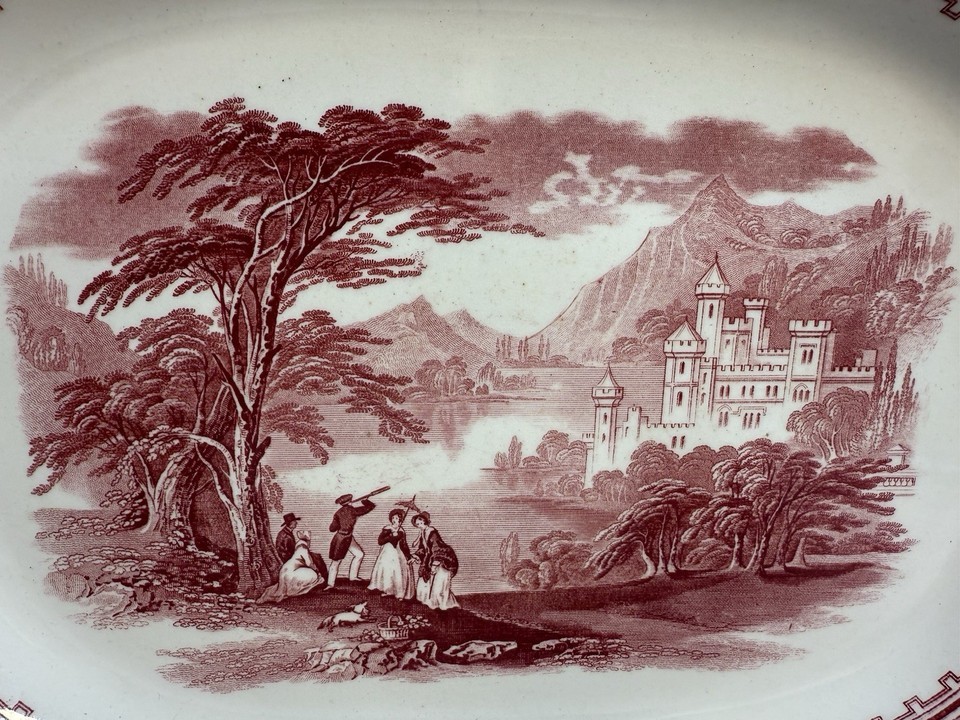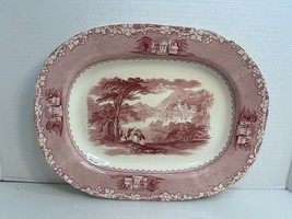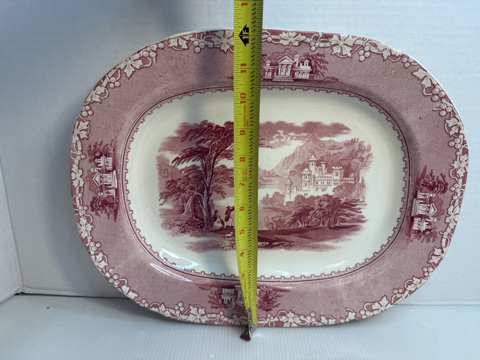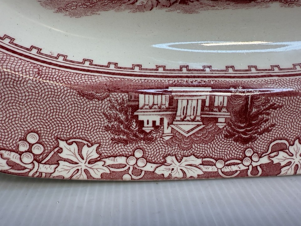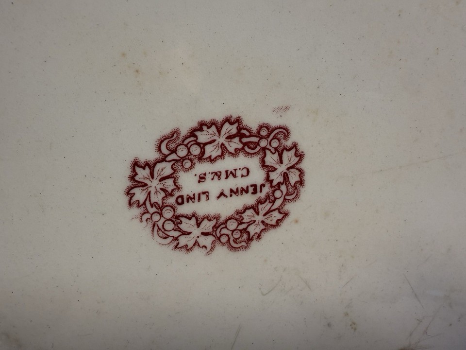 ROYAL STAFFORDSHIRE POTTERY JENNY LIND RED TRANSFERWARE SERVING PLATTER TRAY VTG