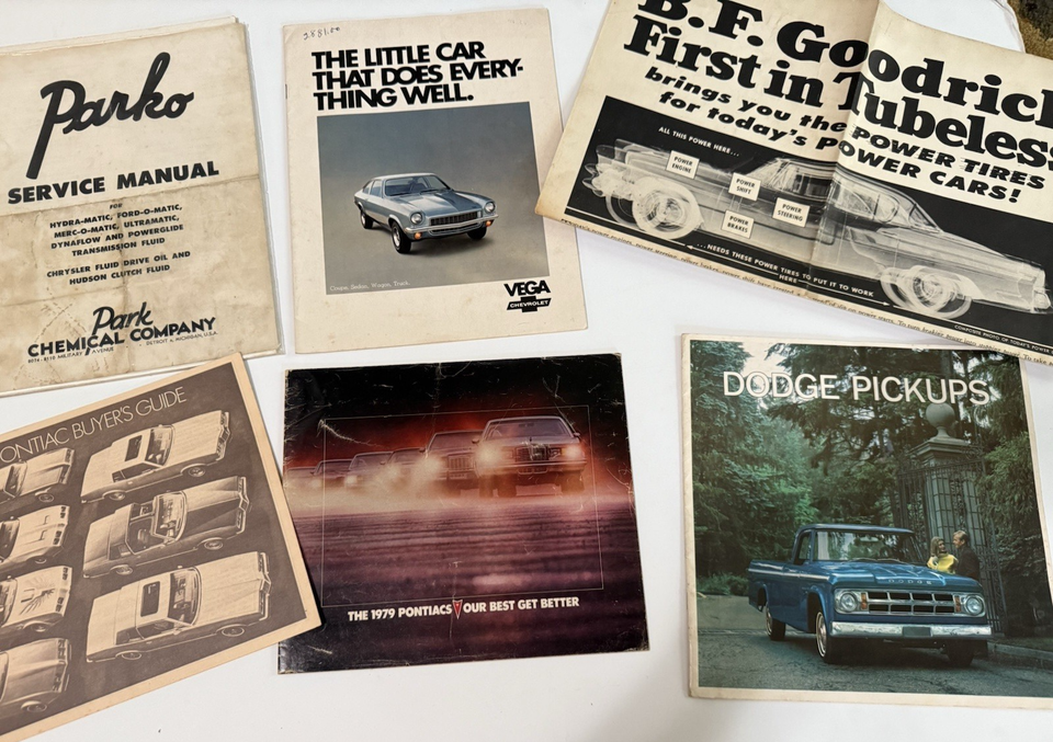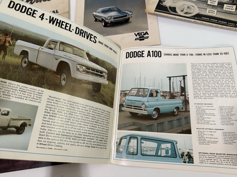 Lot of 6 1950's Vega, Pontiacs, dodge pickup Car Sales Brochure Catalog's