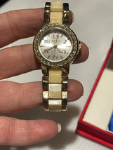 Womens Style & Co Watch 32mm Crystal Bezel Gold Tone And Ivory Ceramic Bands