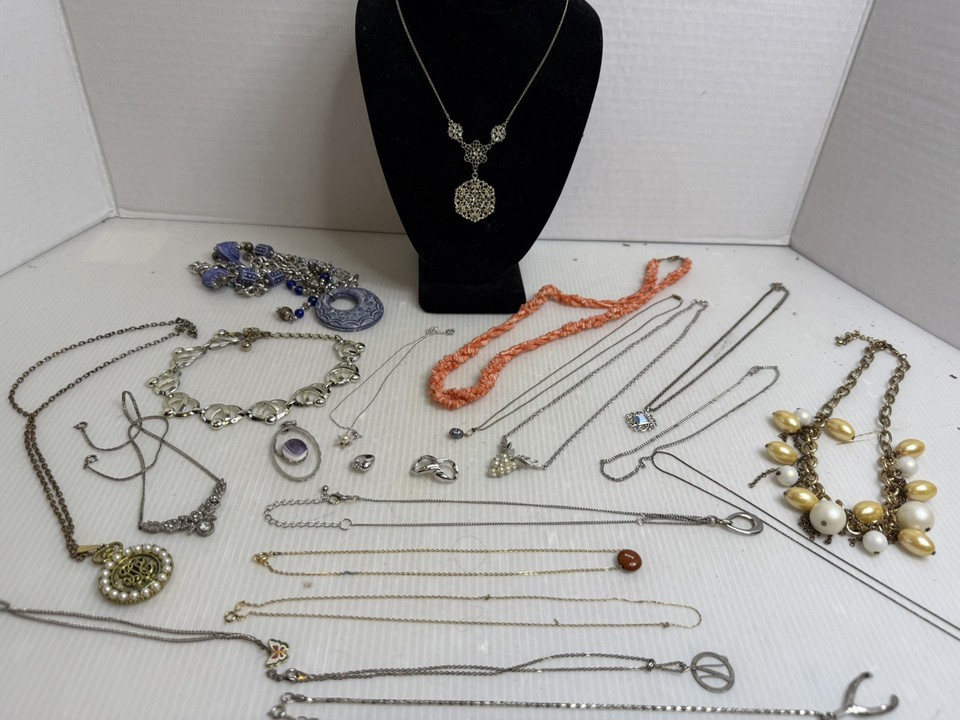 Vintage 22pc Rhinestone Jewelry Lot Of Unsigned Necklaces