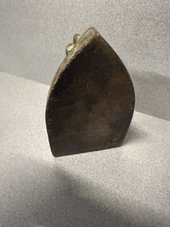 The Vintage Cast Iron Geneva #7 Flat Iron Door Stop Paperweight is a unique and decorative piece that doubles as a functional flat iron. Made of durable cast iron, this gold-colored flat iron is suitable for garment use and features a portable design with a handle for easy use. Perfect for collectors of vintage small appliances, this United States-made flat iron also operates on residual heat from a fire, making it a unique addition to any kitchen or home decor.