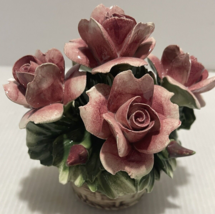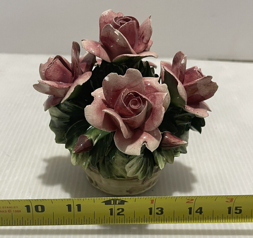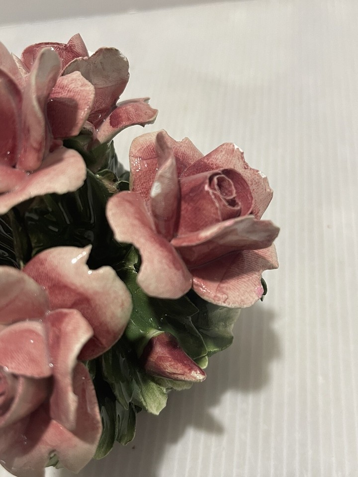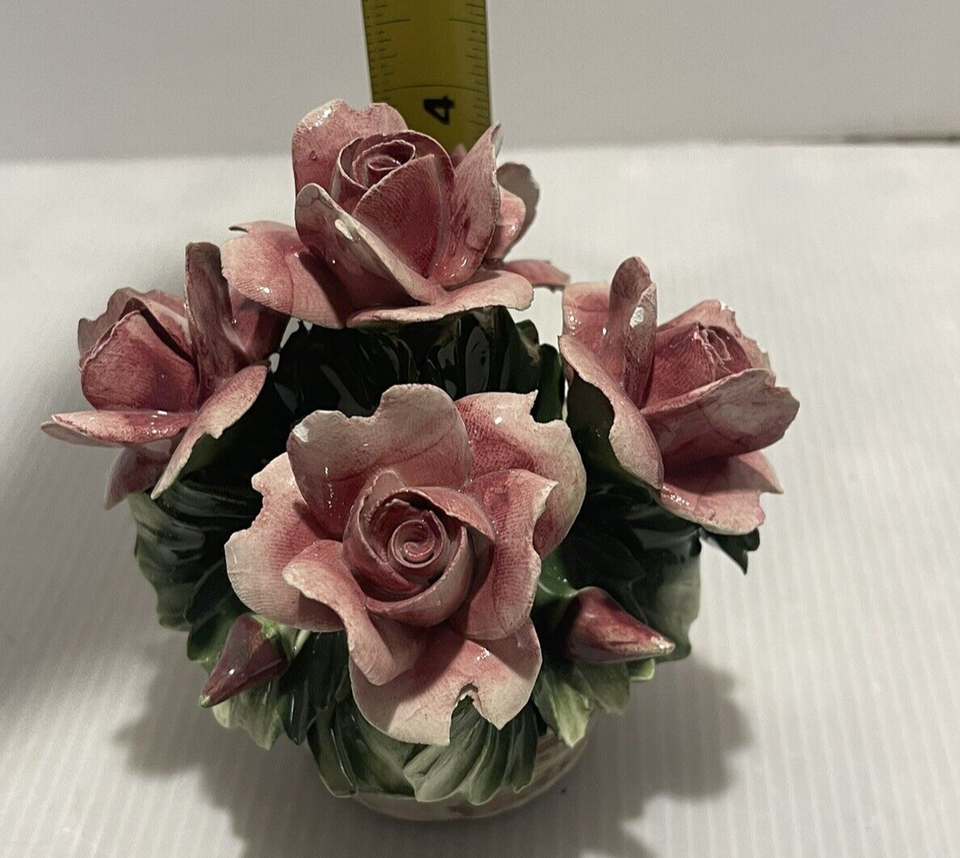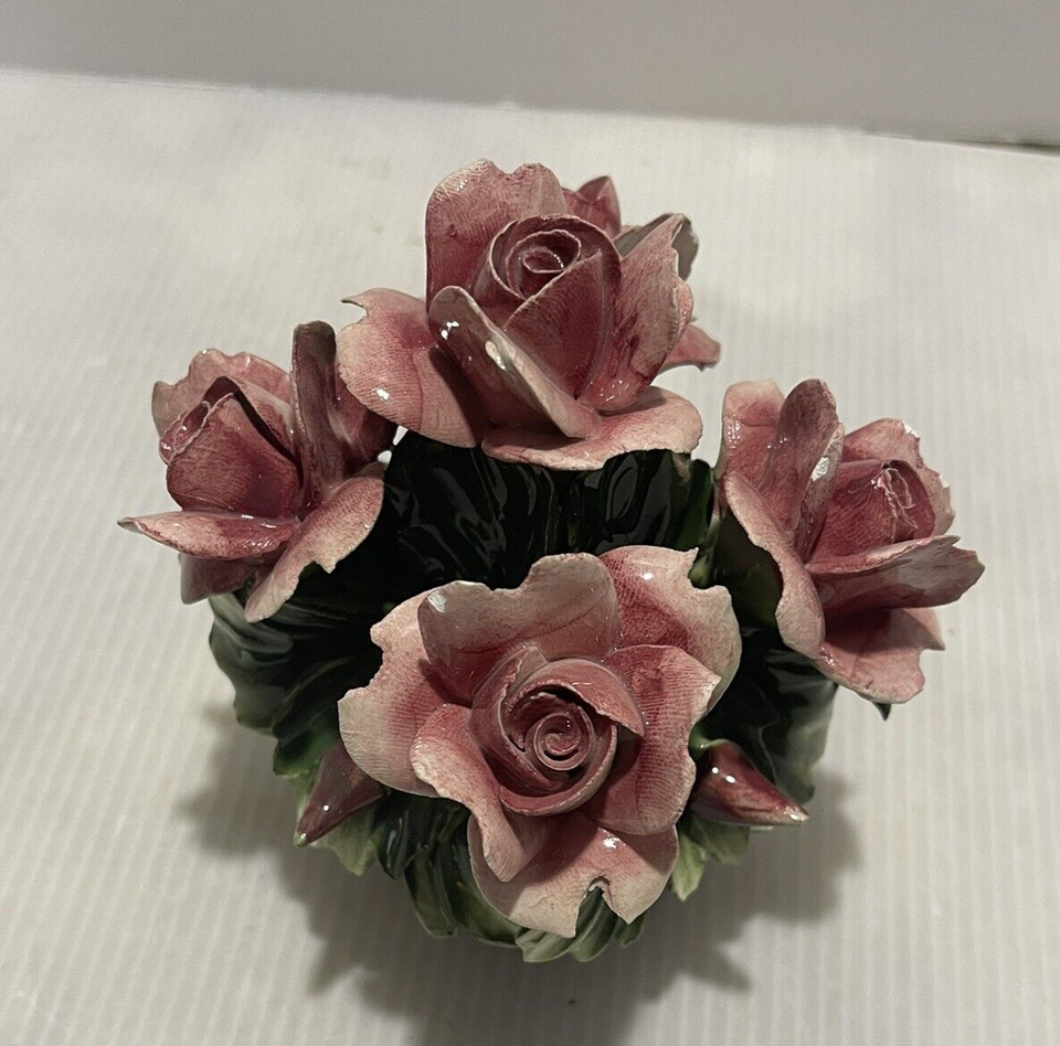 Large Pink Roses Centerpiece Italian Capodimonte 4" Tall