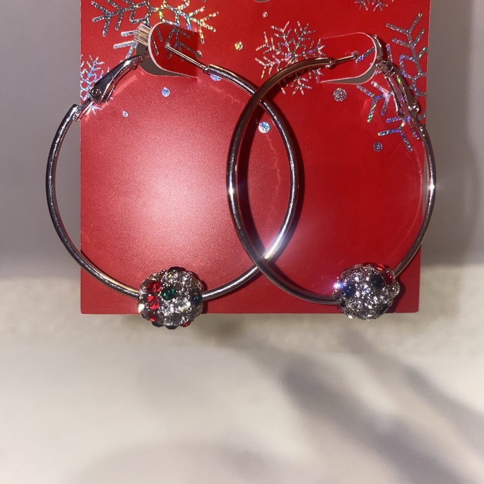 Vintage Sparkly Multicolored Gem Christmas Hoop Earrings (SHIPS IN 24 HRS)