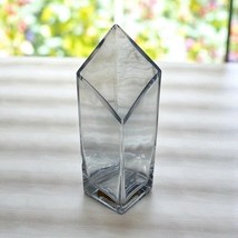 Unique Clear Thick Glass Vase Square Base Diagonal Cut Rim Geometic Contemporary Heavy