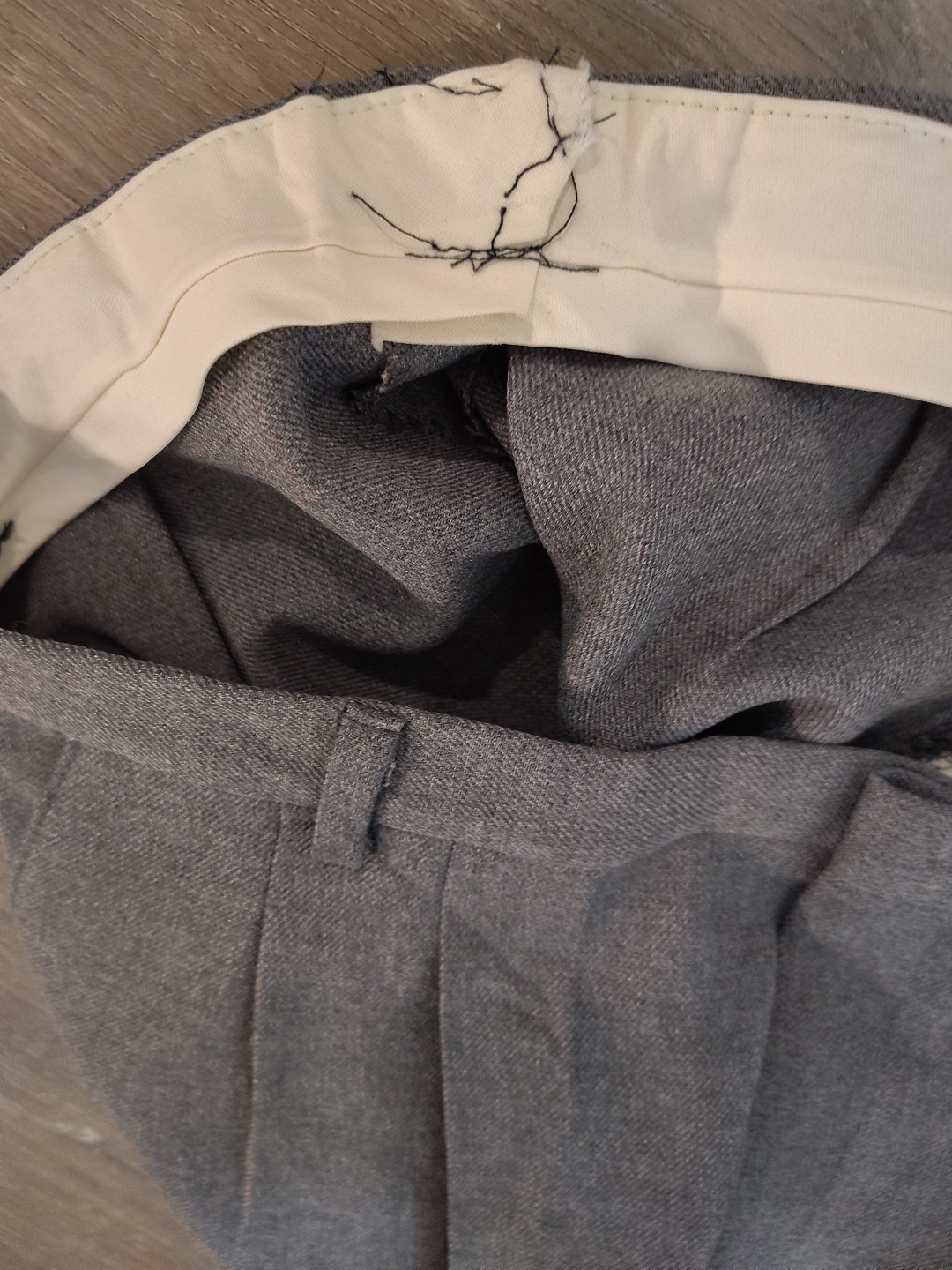 Note: pants were taken in see picture. The seam doesn't show. Nice dress pants. Medium gray.