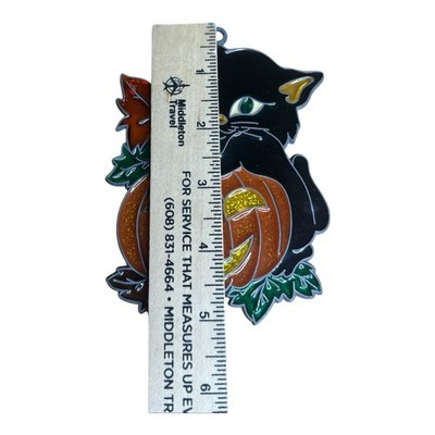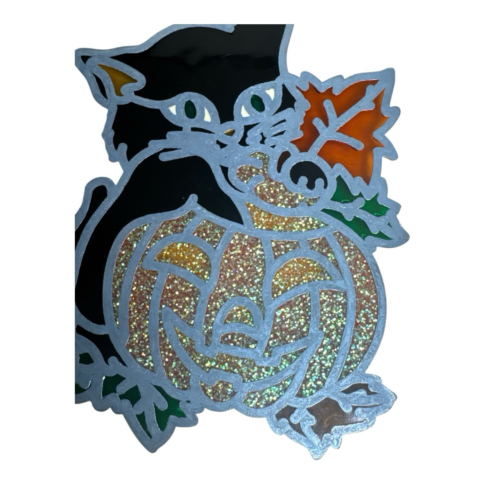 Halloween Suncatcher Black Cat Pumpkin Resin Lead Framed Vintage Fall Autumn