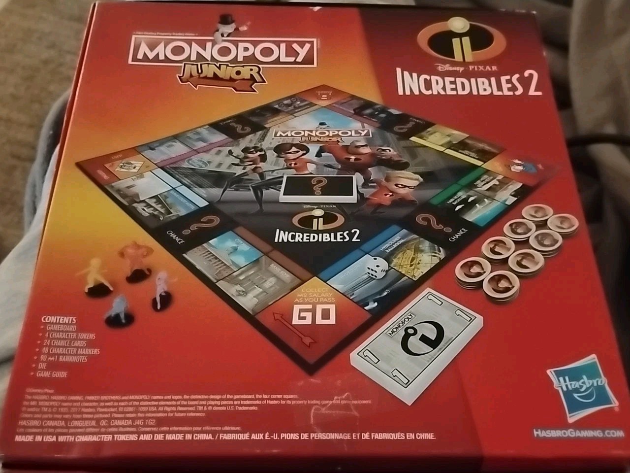 Disney Pixar Incredibles 2 Monopoly Junior Board Game-Complete
