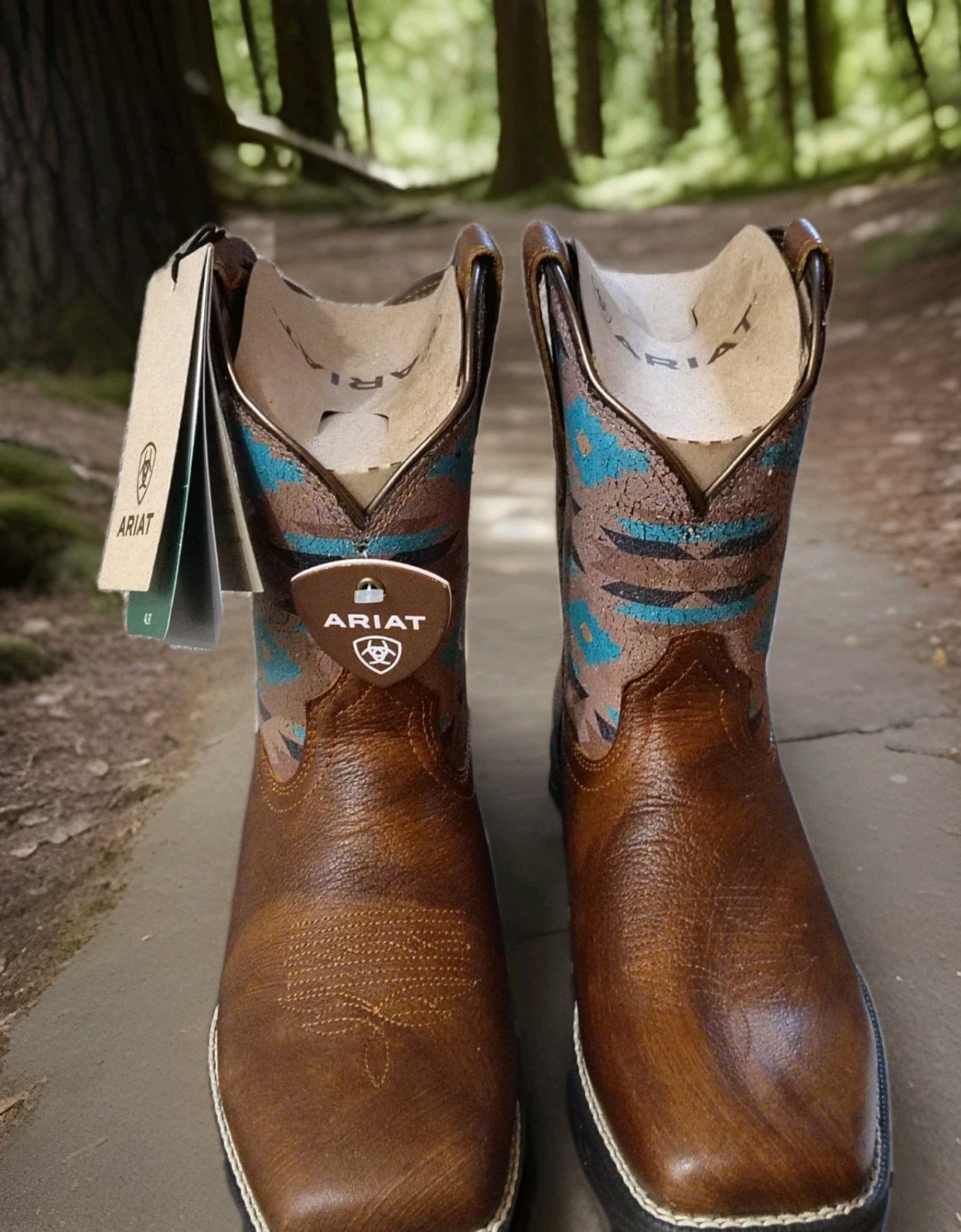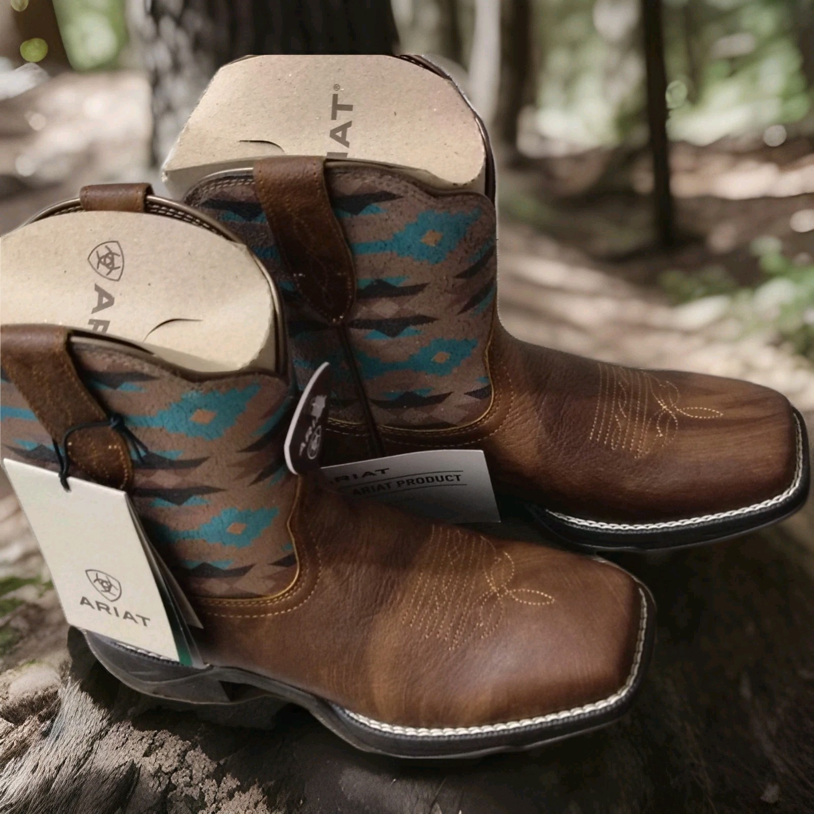 New Ariat Ladies Anthem Savanna Western Boots Coastal Tan/Aztec Size 6