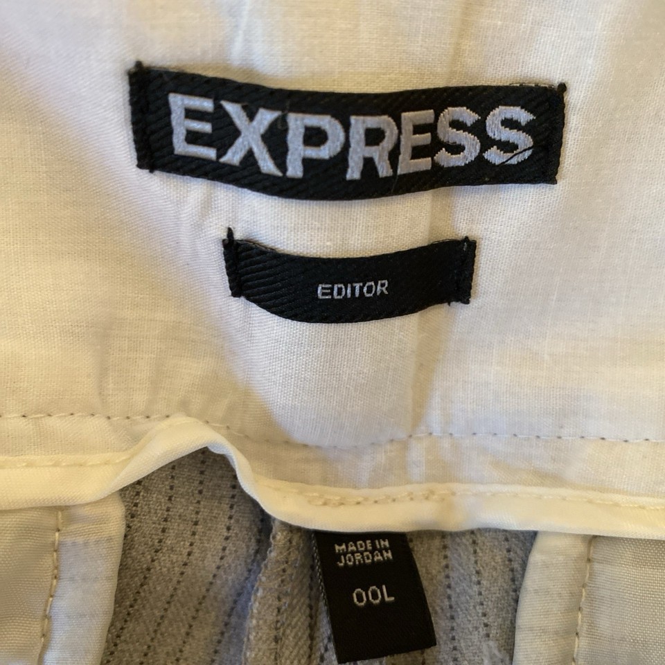 Express Editor Wide Waistband Gray Pin Stripe Pants Low Rise Flare Leg 00L