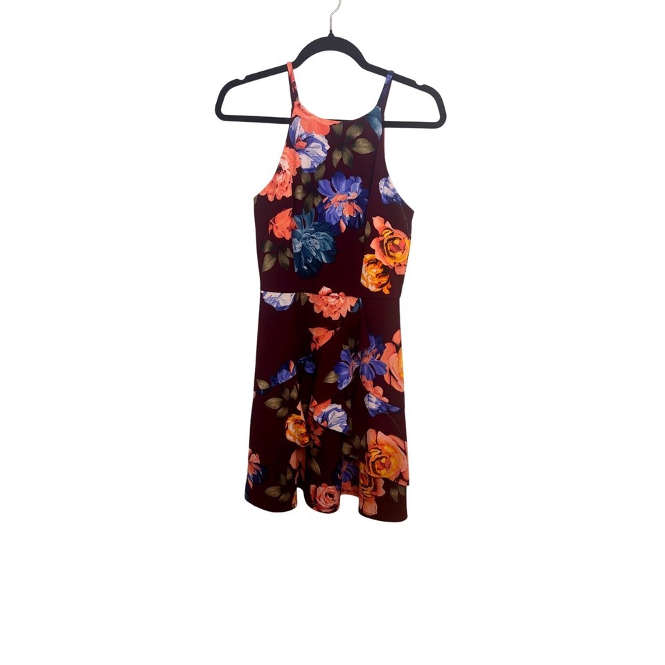 Y2K Floral Dress Sleeveless Tiered Ruffle Size 3 Juniors High Neck Halter BCX