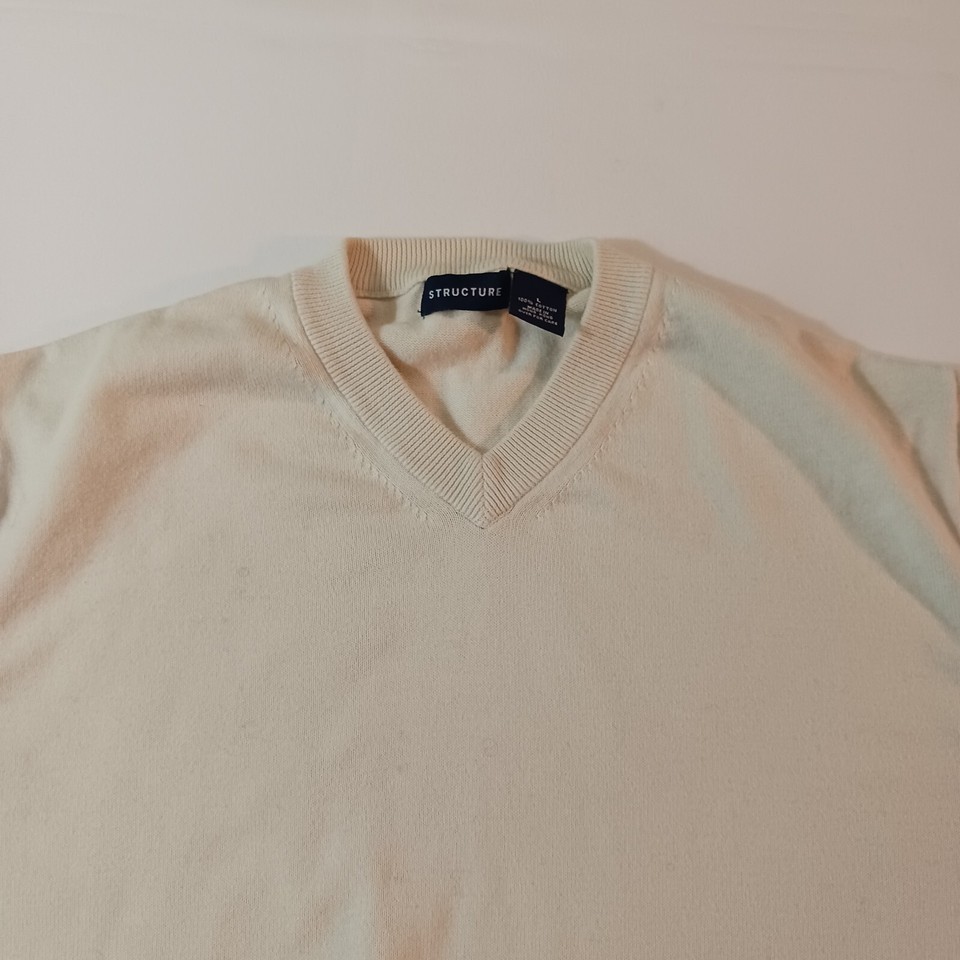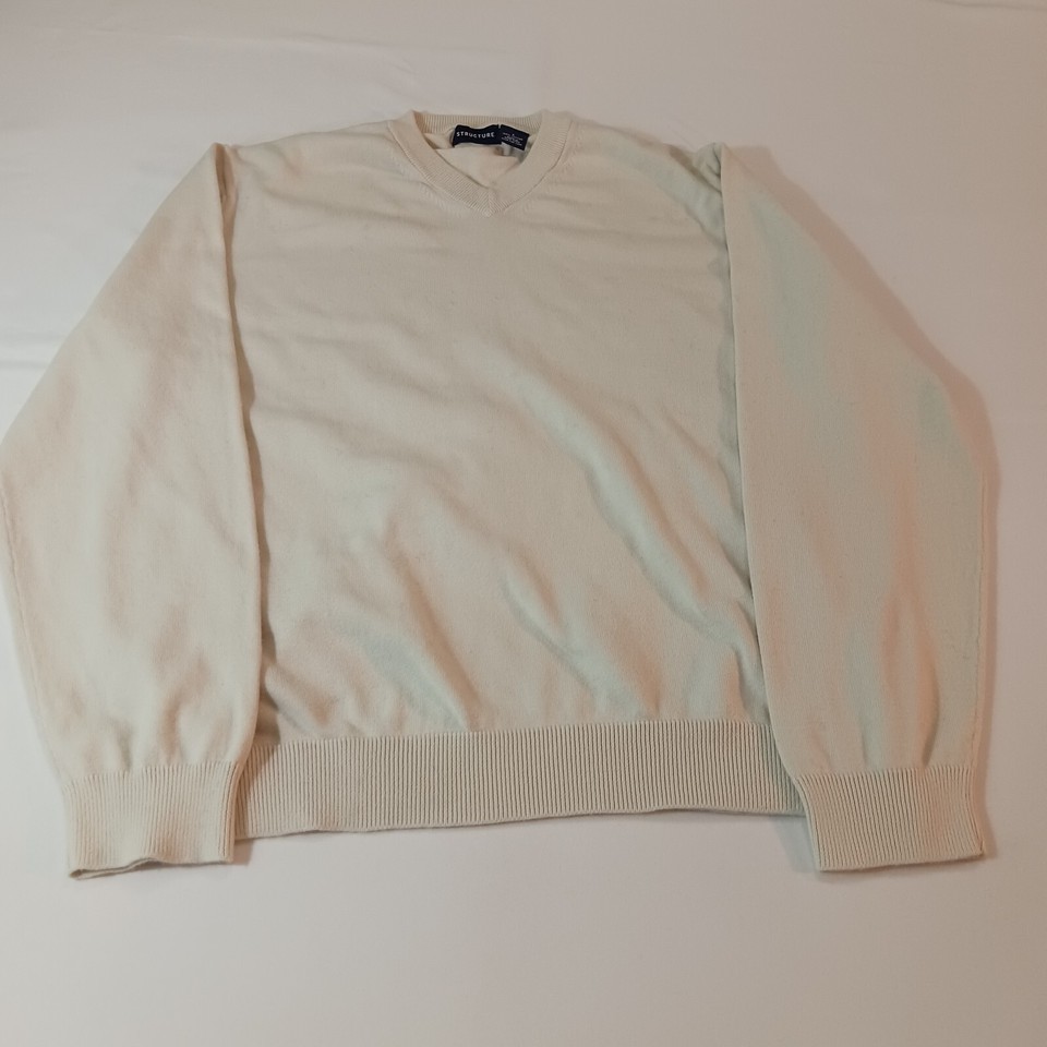 Structure RN84964 V-Neck Men's Beige Cotton Sweatshirt Long Sleeve Size Large