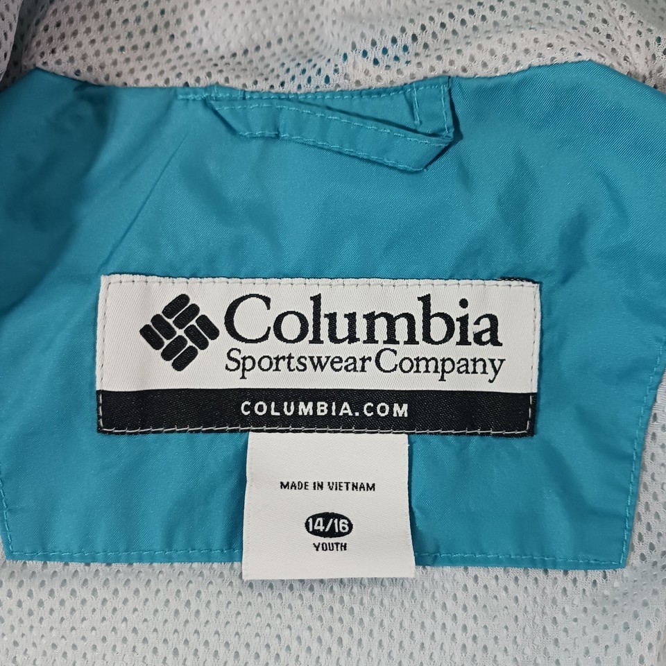 Columbia RG302 Youth Size 14/16 Hooded Full Zip Turquoise Windbraker Jacket