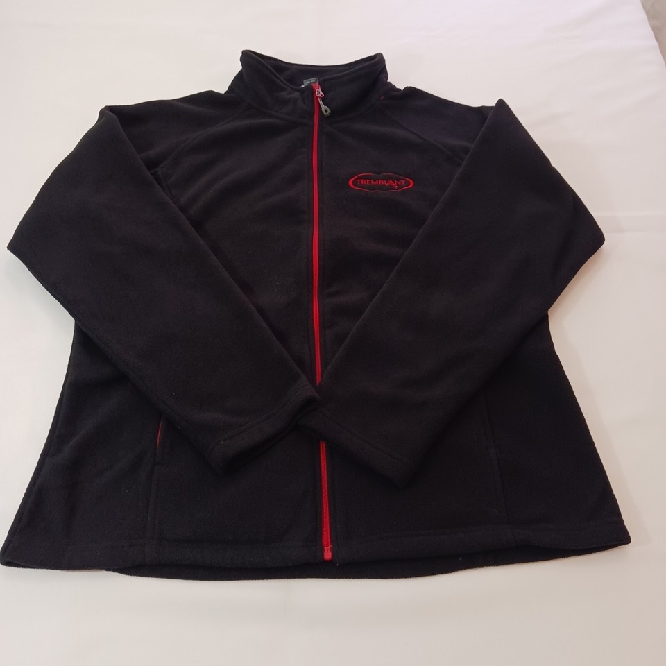 This Landway Outerwear TREMBLANT Men's Black Full Zip Pockets Jacket in size XL is a versatile and practical piece for travel or casual wear. Made of polyester fleece material, this jacket features a full zip closure, making it easy to put on and take off. It has a classic solid black color with embroidered logo accents, adding a stylish touch to the design. With multiple pockets for storage and a comfortable fit, this fleece jacket is perfect for the winter, fall, and spring seasons, providing warmth and functionality for outdoor activities like walking.