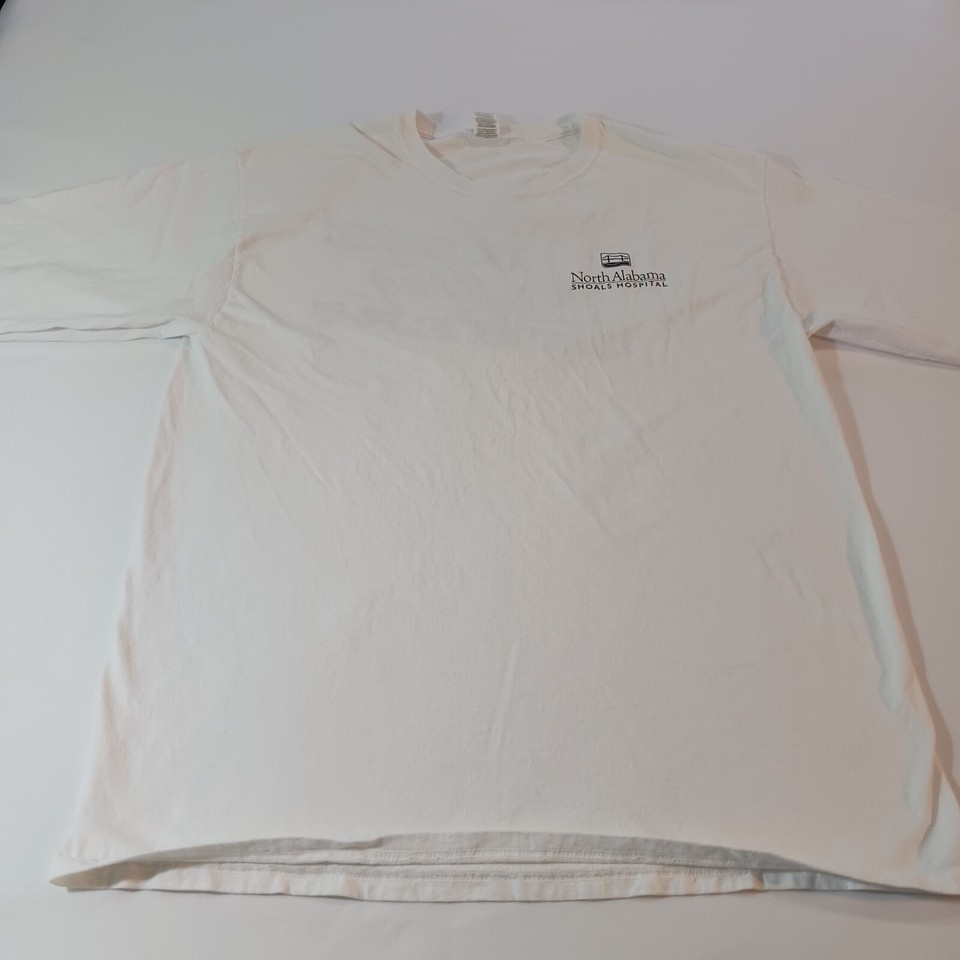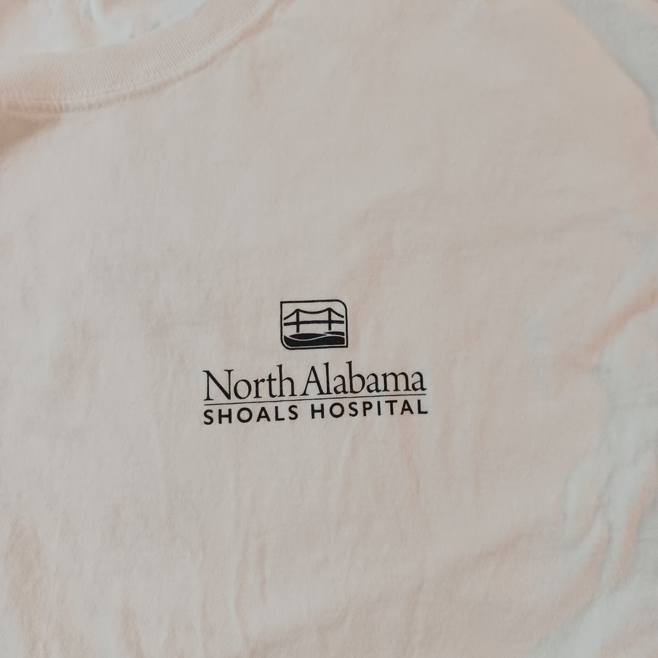 The shirt also has a special theme, showcasing the North Alabama and Shoals Hospital. It is perfect for men who want to show their support for these institutions while keeping comfortable and stylish. Get your hands on this unique t-shirt now!