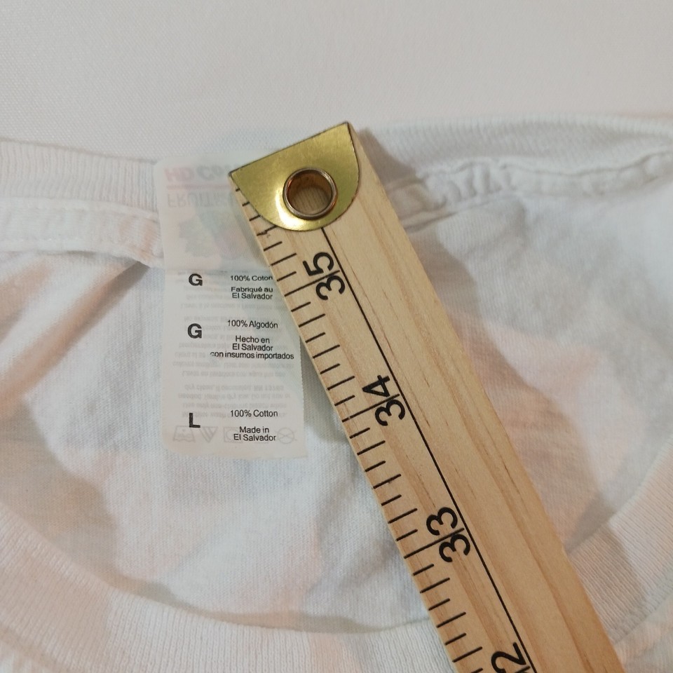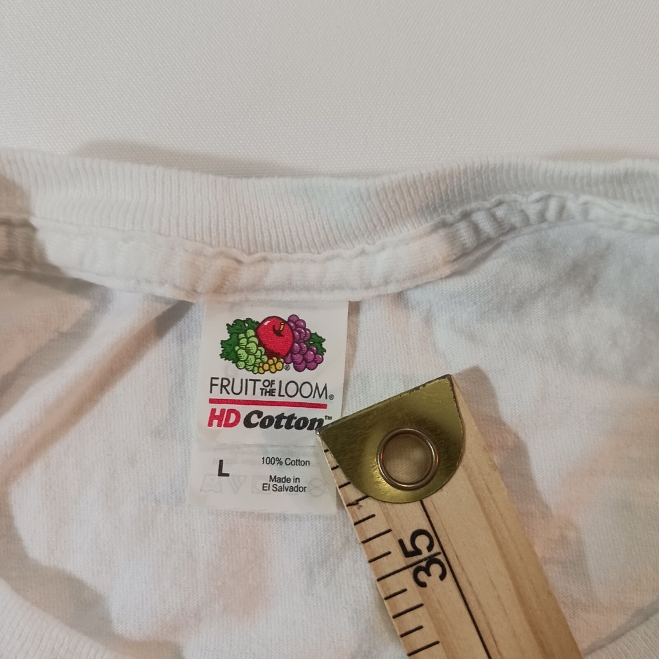 This white t-shirt from Fruit of the Loom is a great addition to your wardrobe. The shirt features a solid pattern, crew neckline, and long sleeves. It is made of ultra cotton material and is available in size L with a regular fit.