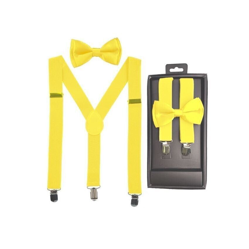 Elastic & Adjustable Suspender & Bow Tie Set for Boys Girls Children - Yellow