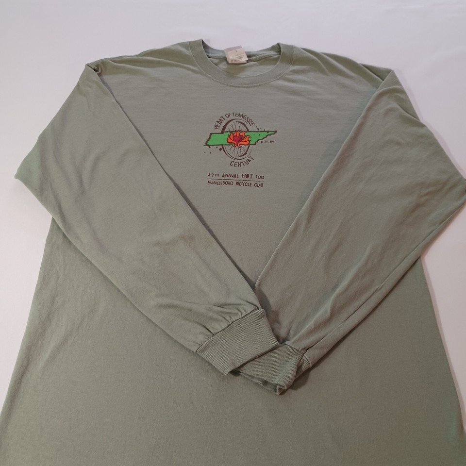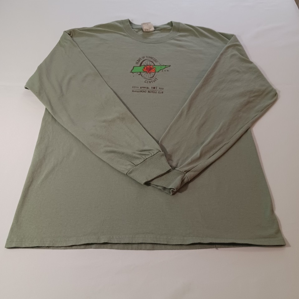 Hanes Beefy HEART OF TENNESSEE Mens Green Cotton T-Shirt Long Sleeve Sz L(42-44)