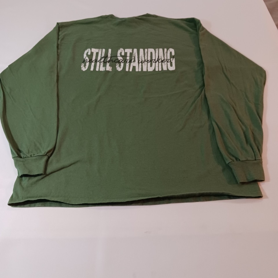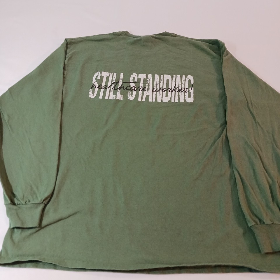 Show your support for North Alabama and the Shoals Hospital with this vibrant green Gildan Ultra Cotton T-Shirt. Made from 100% cotton, this shirt features a crew neckline and long sleeves, perfect for cool weather. The solid color and classic fit make it versatile for any occasion, while the "Still Standing" theme adds a touch of inspiration. Available in size L, this regular fit shirt is a great addition to any wardrobe. Made in Nicaragua, this product is part of the Gildan Ultra Cotton product line and boasts features like comfort and durability.