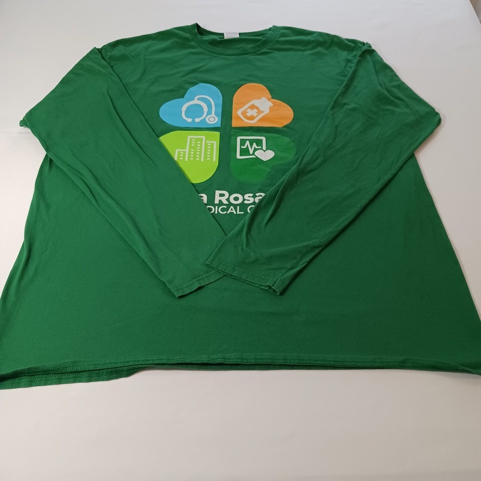 This Port Company T-Shirt features a graphic print of the Santa Rosa Medical Center in Greenville, SC. The shirt is made of ring-spun cotton and has a crew neckline with long sleeves. It is a size 3XL and machine washable. The shirt is perfect for summer, fall, or spring and is part of the Port Company Fan Favorite product line. The shirt is not vintage and is made in Honduras. It features the Port Company logo as an accent.