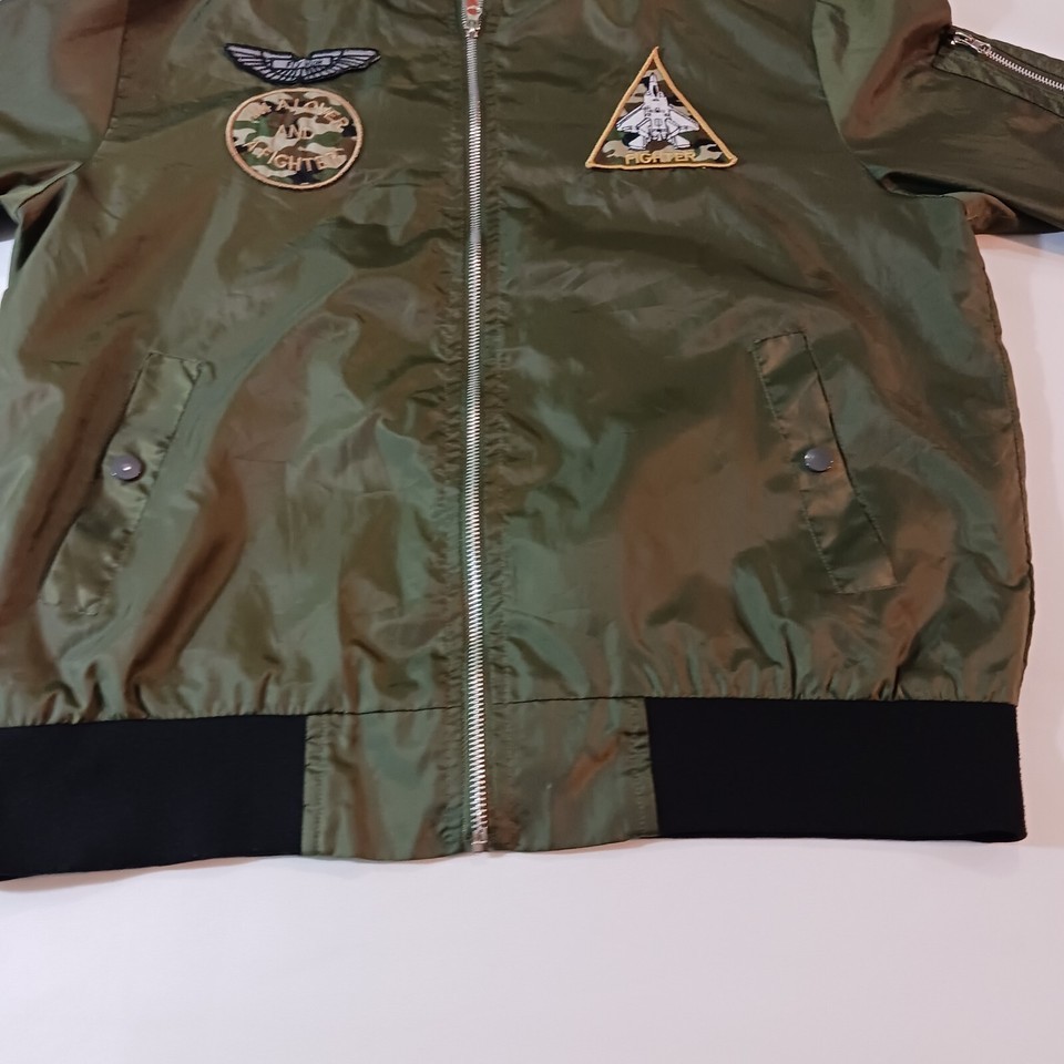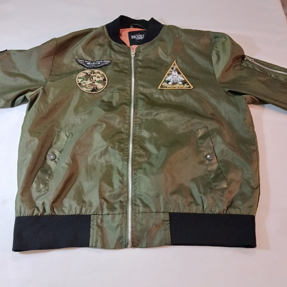 Brooklyn Standard Bomber Jacket Men's Green Patchwork Military Streetwear Size M